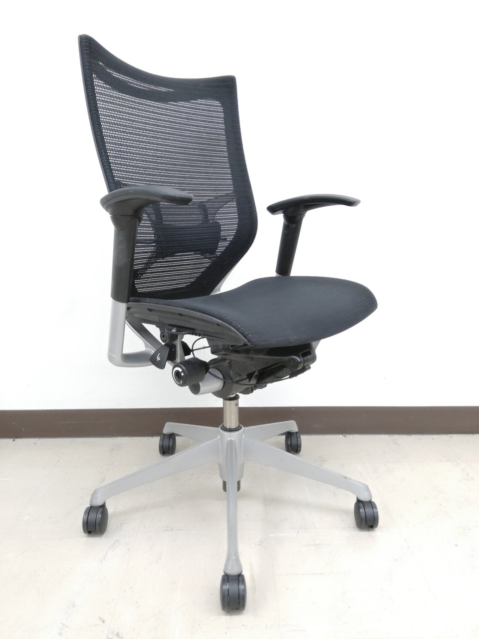 【人間工学に基づいた快適設計で身体にやさしくフィット!】■オカムラ バロンチェア 可動肘付 ブラック ポリッシュフレーム ■上質な座り心地を体感できます!【良い椅子は腰を守る投資です!】★