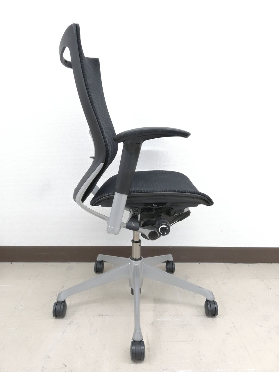 気に入っているのはリクライニング調整の自由さです。同じオカムラ社製の上位モデルや下位モデルも、角度が5段階程度の固定位置だったり、リクライニング強度も4段階だったりしますが、バロンチェアはどちらも無段階。つまり完全に好きな位置、好きな強度に調整することができます。