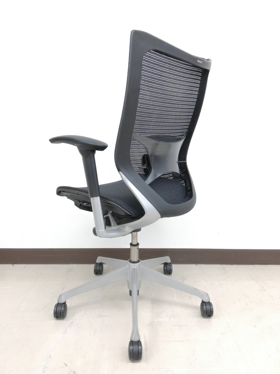 【硬めの座面が大人気!国産メッシュチェアの代表格!オフィスの執務室、会議室におすすめ!】■オカムラ(okamura)製 バロン(Baron)チェア 肘付き ハイバック 背面メッシュ ■固定肘 ■色:ブラック【IB】