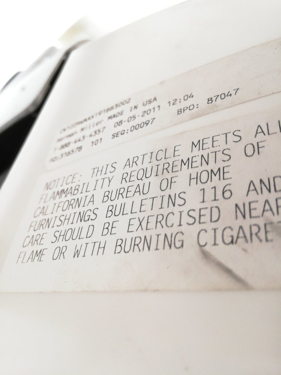 - かなり強い濃い黄ばみ・変色が商品全体にある。(例、座面・背もたれ、脚部等にある。)