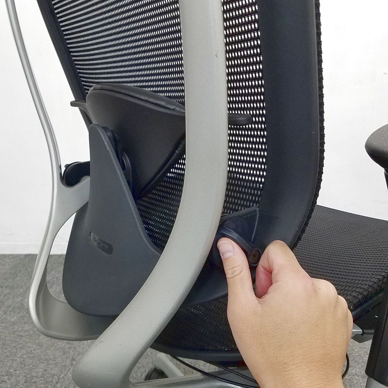 - 座面の前後スライド調整レバーで操作(前後50mm分調整で)できます。(グラデーションサポートメッシュタイプを除く)