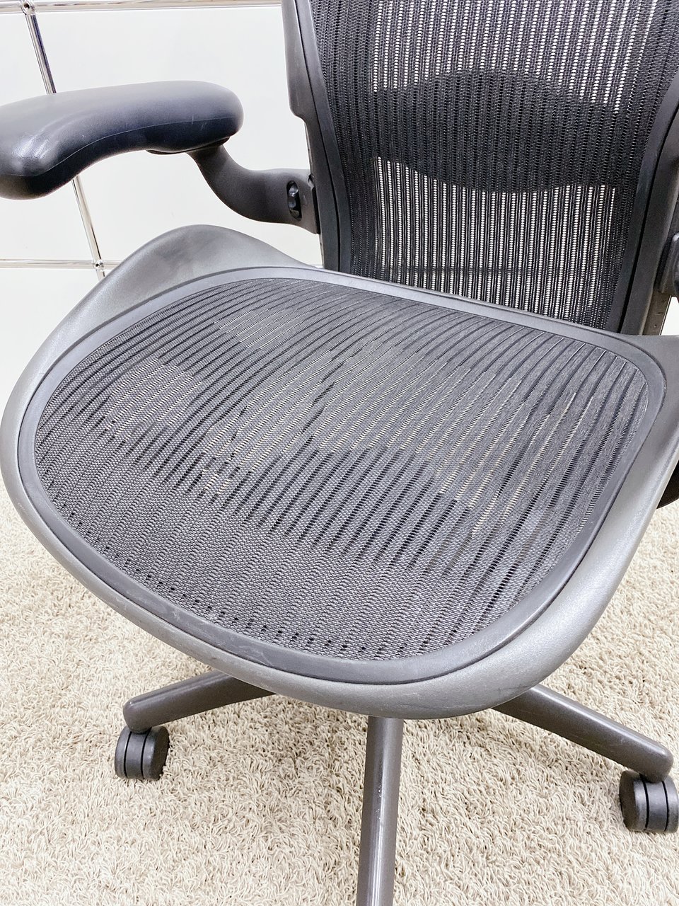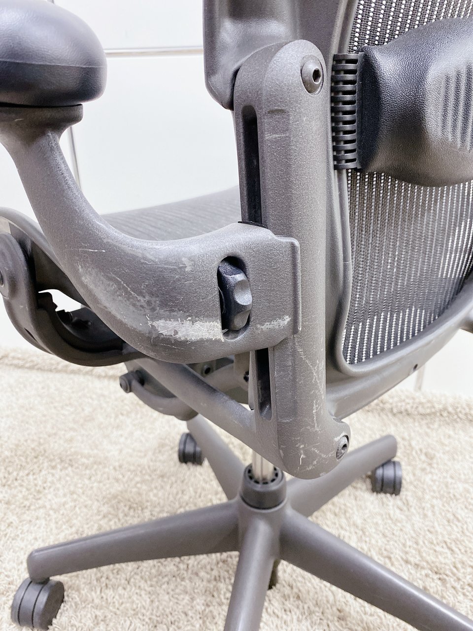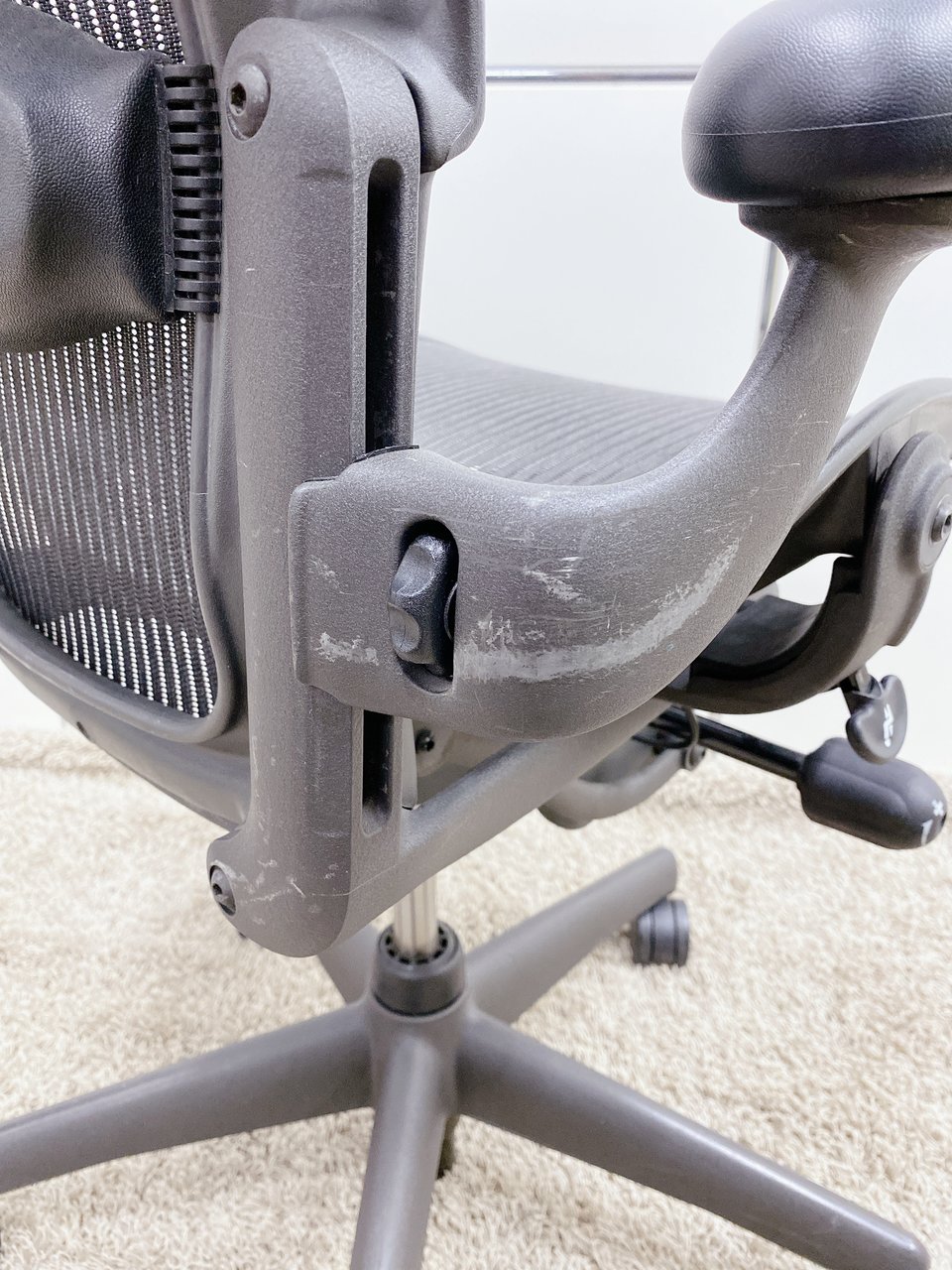 【★状態イマイチのためお安く!】■ハーマンミラー製 アーロンチェア Bサイズ 固定肘 ※キズあり・ランバーサポート無・昇降ガス圧弱めのためお安く!【訳あり特価品】