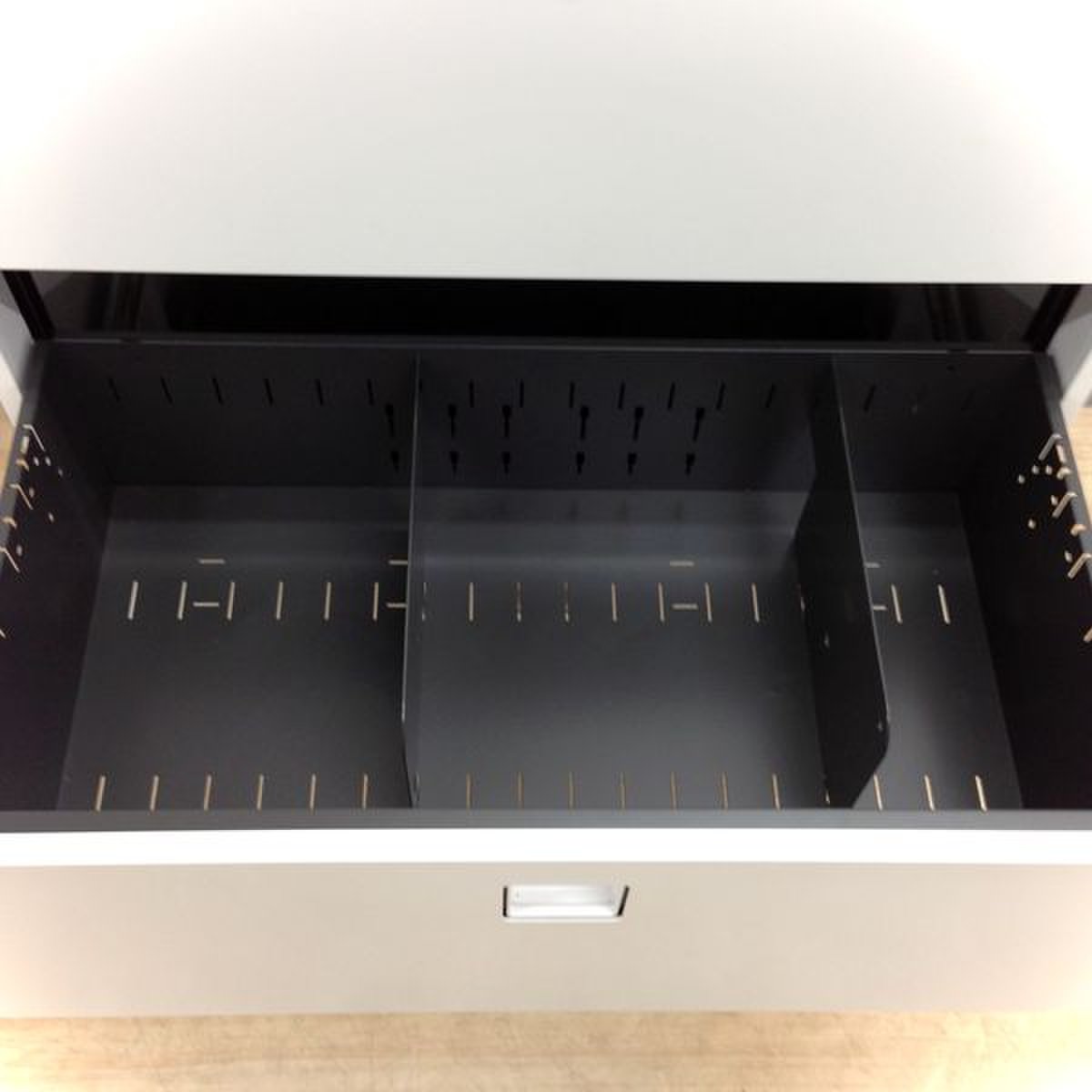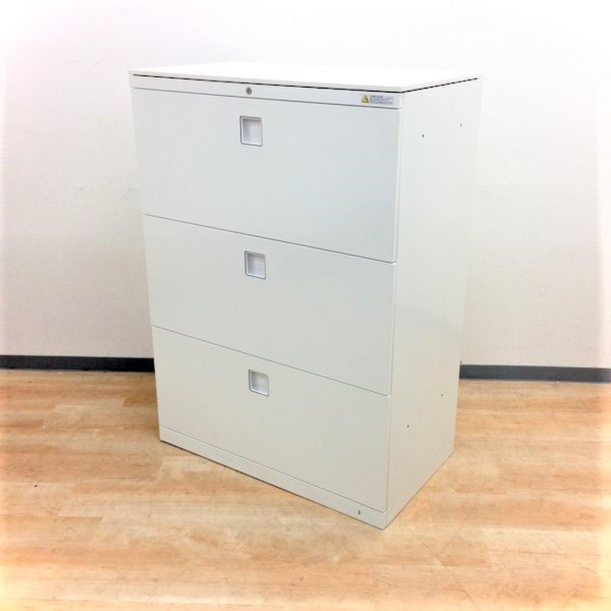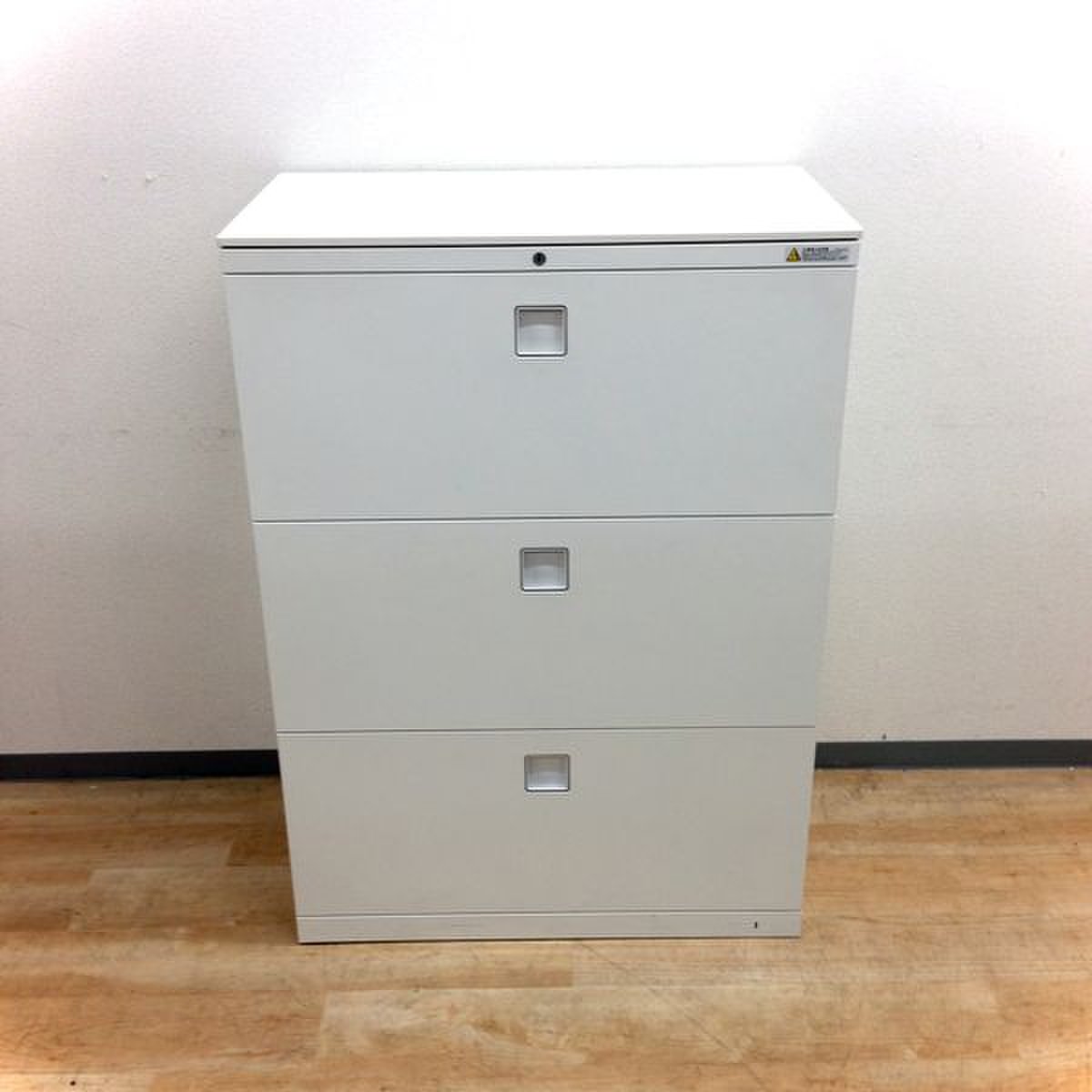 オカムラ レクトライン 3段ラテラル書庫 ホワイト天板 シリンダー錠 鍵付き ※取っ手部分に若干日焼けあり