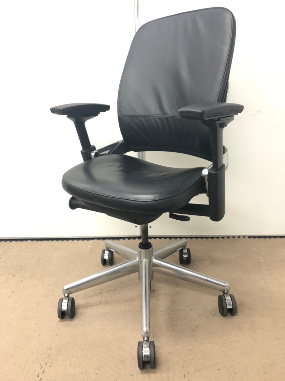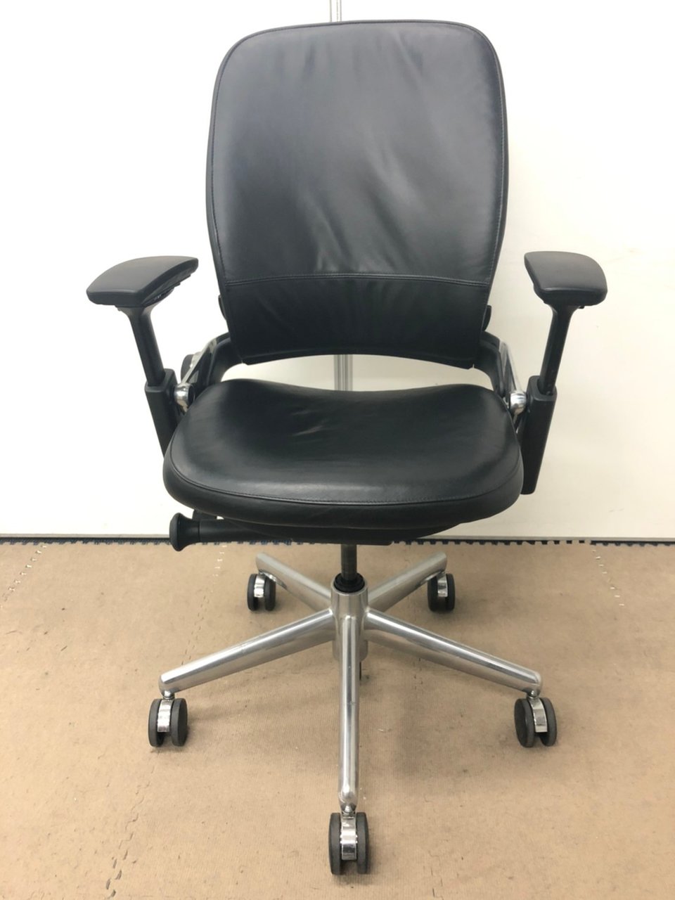 【限定1脚】ワークチェア アームレスト付 可動肘 ブラックフレーム オススメ(おすすめ) 大人気 ・Steel case/スチールケース ・Leap-v2/リープV2 ※横浜本店撮影画像※