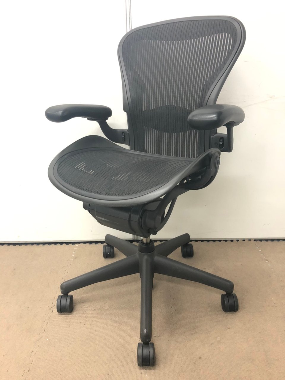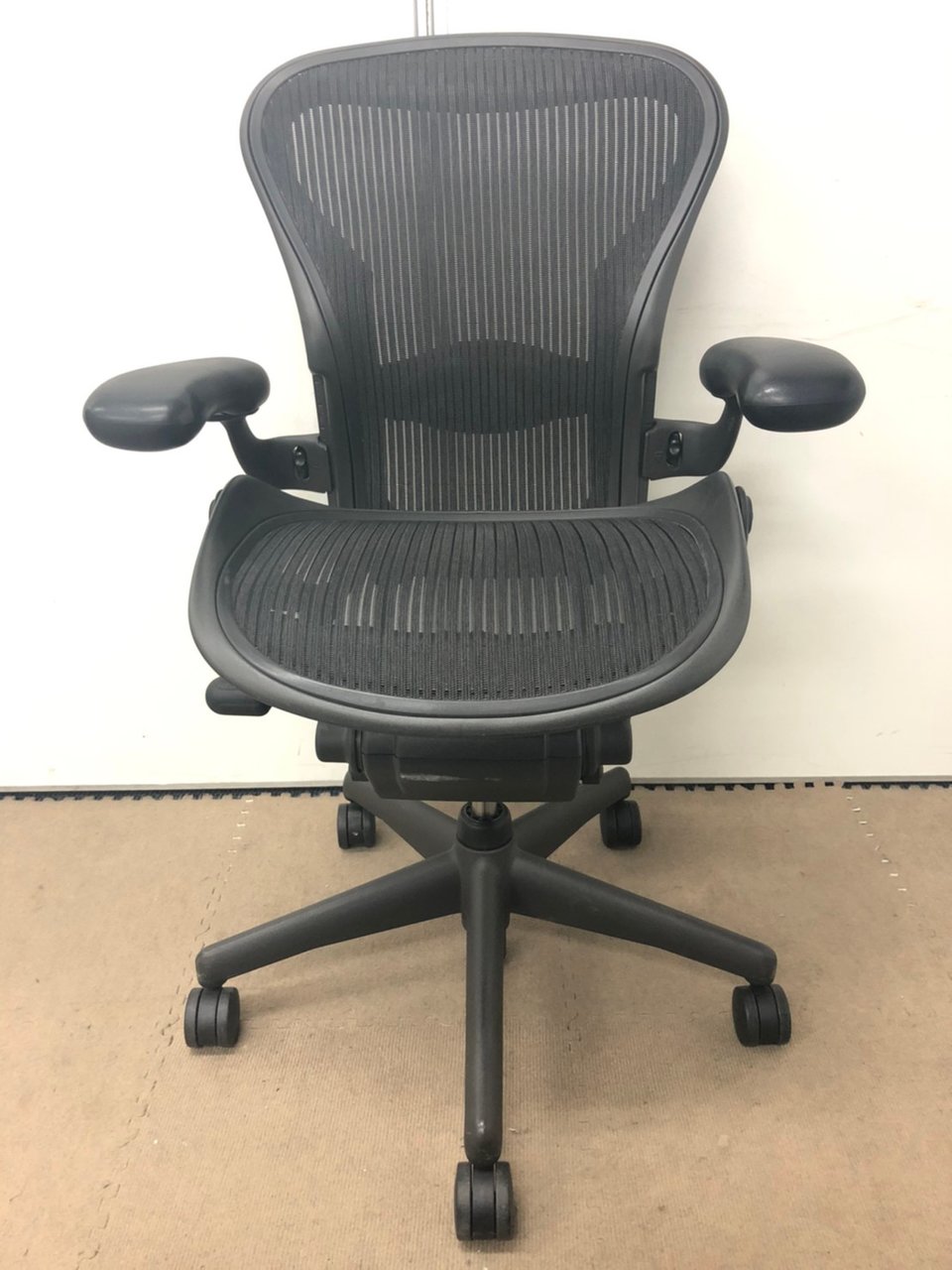 【★状態イマイチのためお安く!】■ハーマンミラー製 アーロンチェア Bサイズ 固定肘 ※キズあり・ランバーサポート無・昇降ガス圧弱めのためお安く!【訳あり特価品】