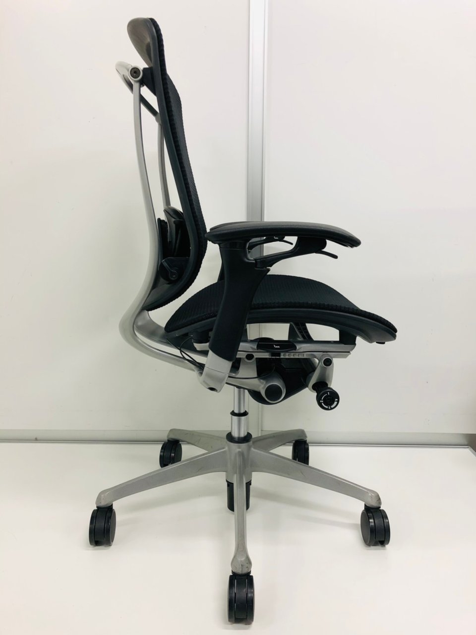 【世界で認められた革新的タスクチェア!人間工学に基づいた快適な座り心地を実現!】■オカムラ(okamura)製 コンテッサ(Contessa)チェア ハイバック 肘付き 背面メッシュ ■可動肘・ランバーサポート付 ■ブラック ※肘スレ有