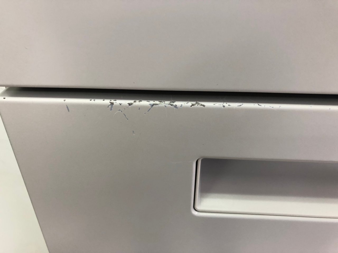 - 目立つ箇所あり傷・凹みが多数、深い傷・凹みが一部ある。(例、天板、正面、背部、サイド部分にある。)