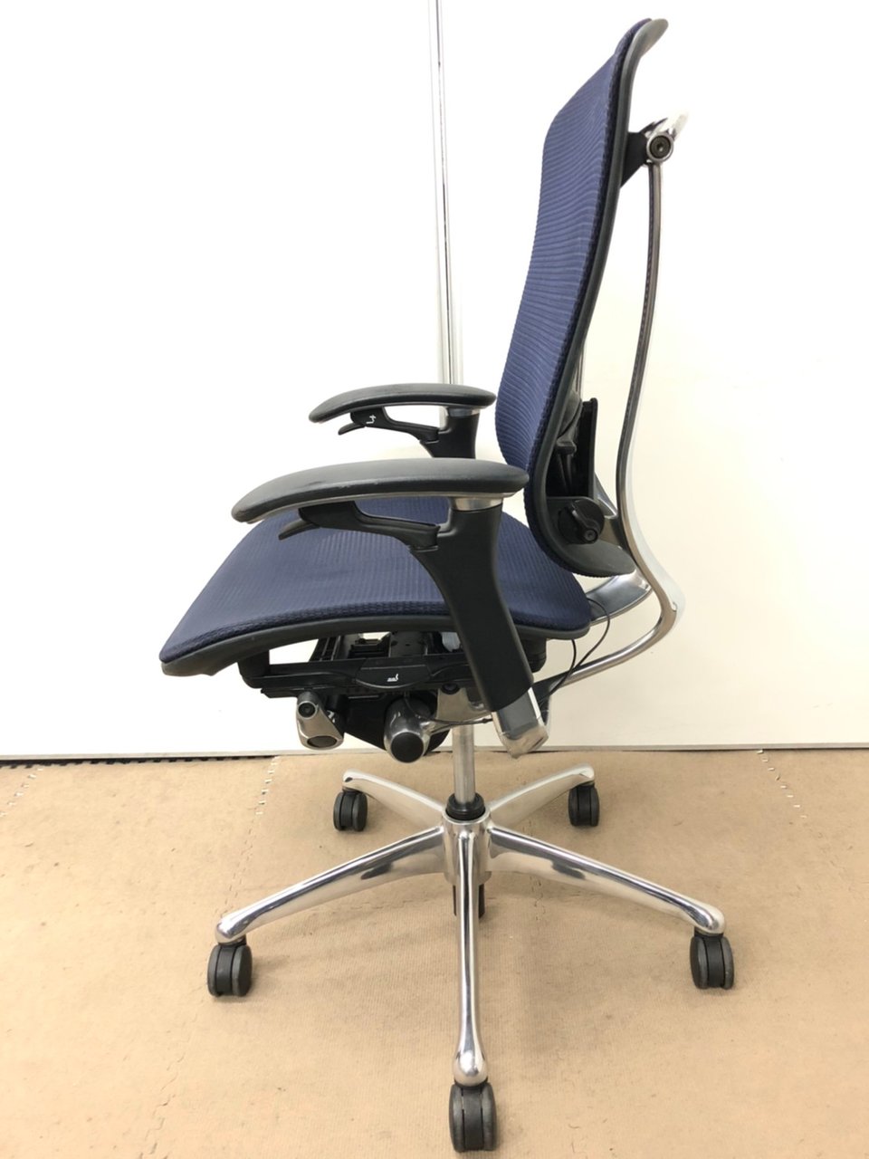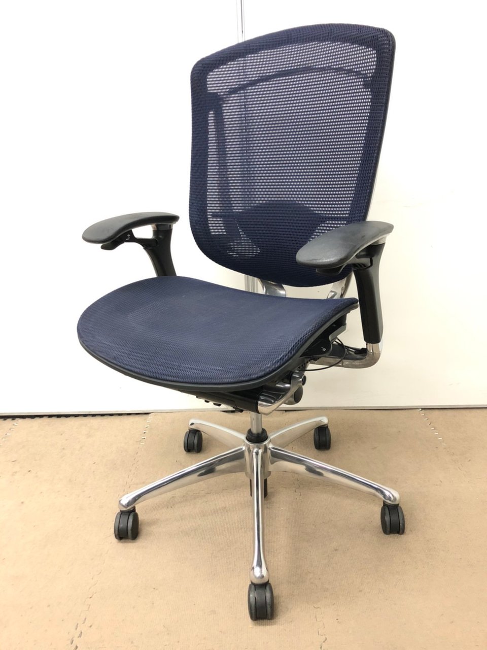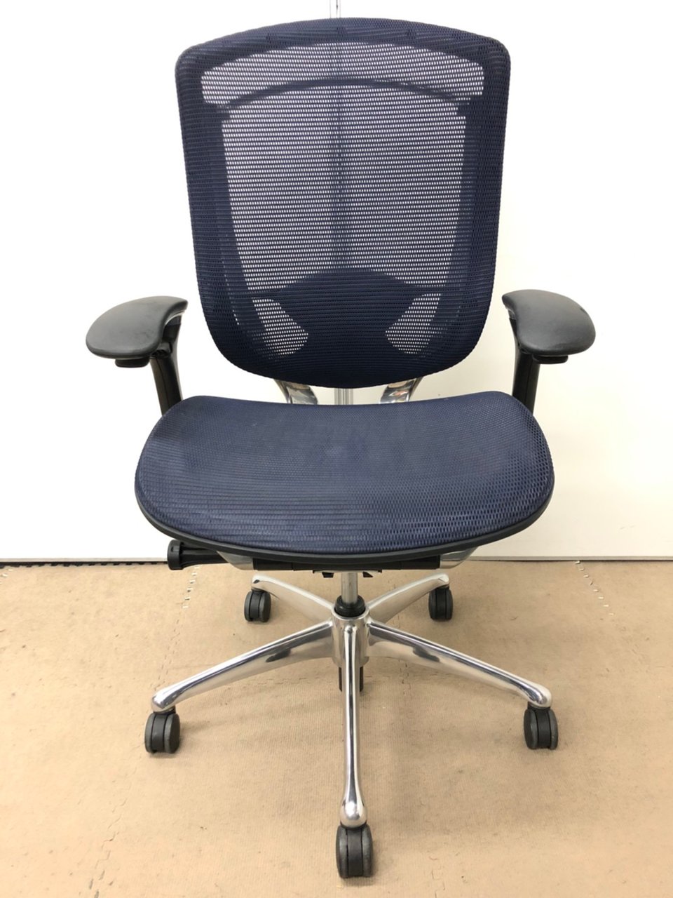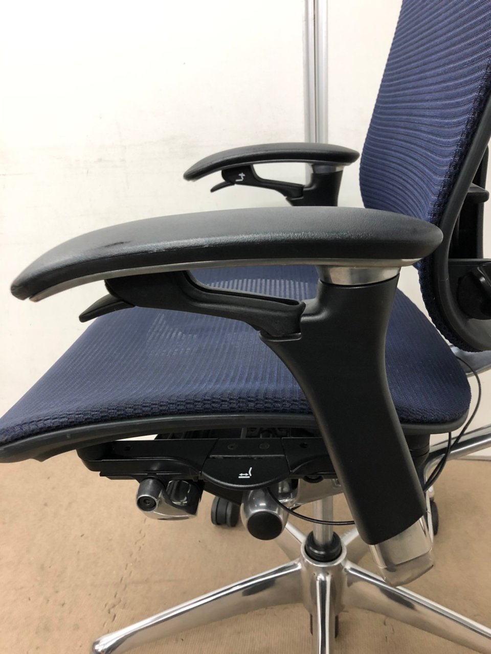 【オカムラ製の最高級チェアが残り1脚限りです!!】オフィスバスターズ 東大阪店 オカムラ製 コンテッサ シリーズ ダークブルー アジャストアーム※可動肘 背/座面メッシュ ランバー 世界で認められた革新的タスクチェア!人間工学に基づいた快適な座り心地を実現! 肘付きハイバックチェア!! 中古 外部倉庫品