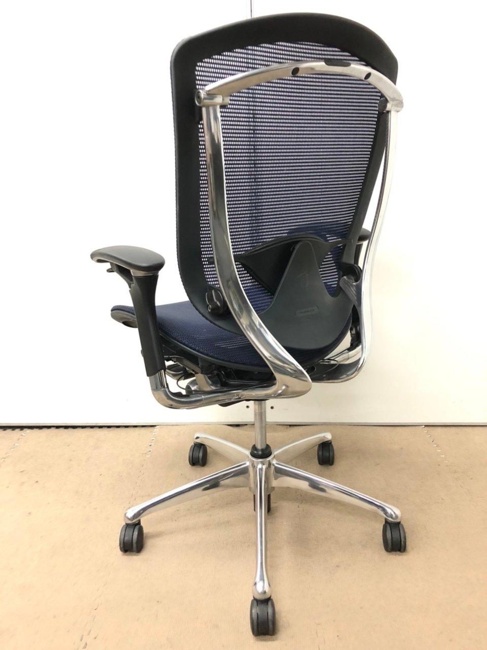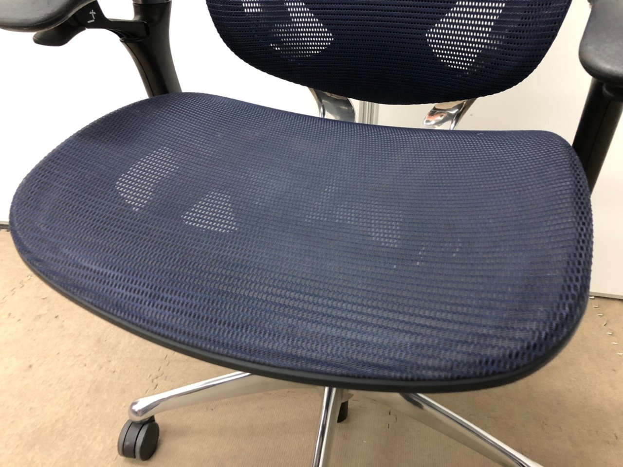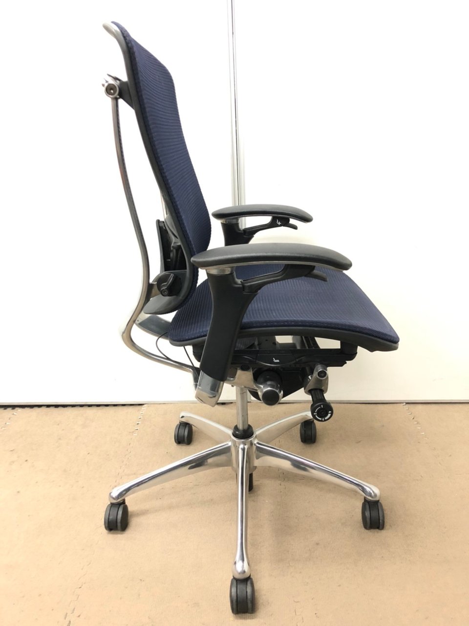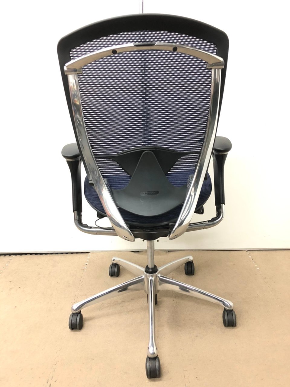【オカムラ製の最高級チェアが残り1脚限りです!!】オフィスバスターズ 東大阪店 オカムラ製 コンテッサ シリーズ ダークブルー アジャストアーム※可動肘 背/座面メッシュ ランバー 世界で認められた革新的タスクチェア!人間工学に基づいた快適な座り心地を実現! 肘付きハイバックチェア!! 中古 外部倉庫品