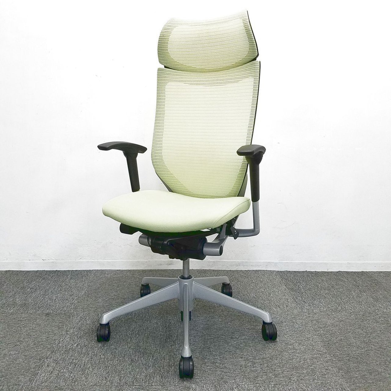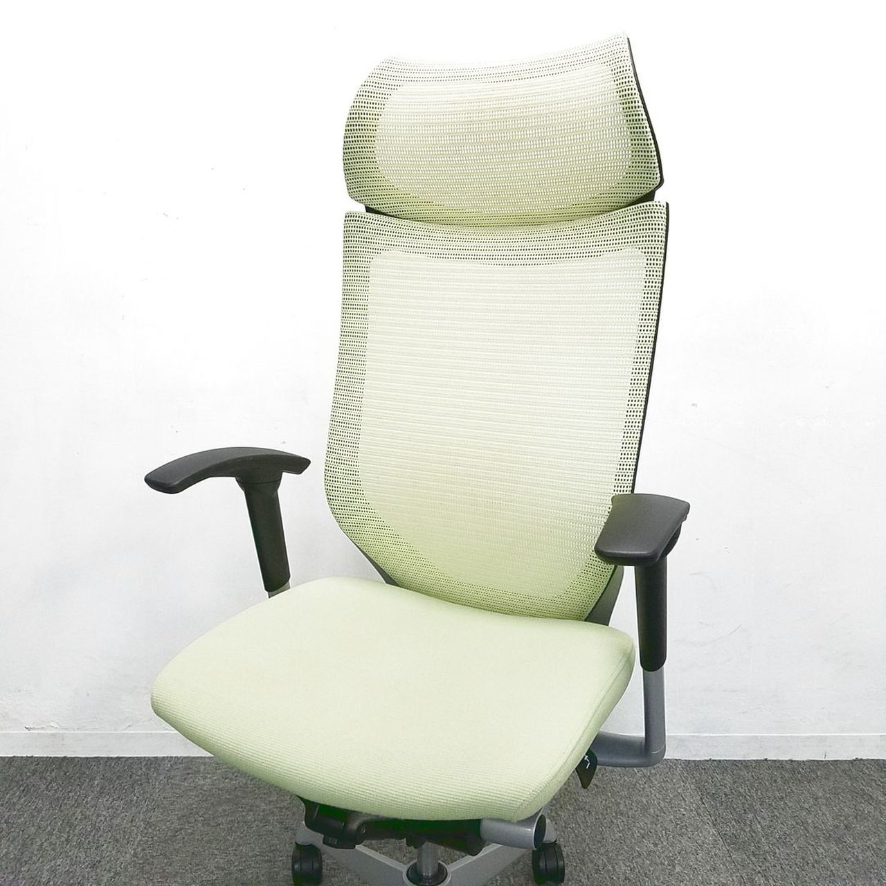 【良い椅子は腰を守る投資です!】■オカムラ製 バロンチェア ピスタチオグリーン 可動肘 固定ヘッドレスト付【エクストラハイバック】サーキュラーバリューCO2削減量の算出について