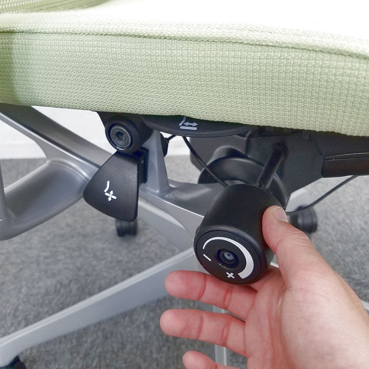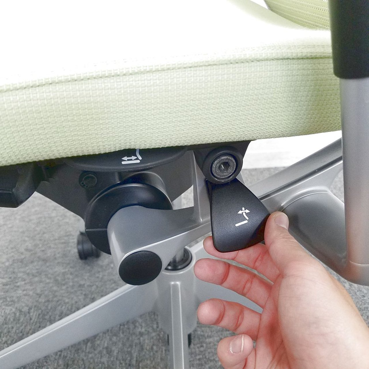 座面のすぐ右下にあるレバーの操作により、