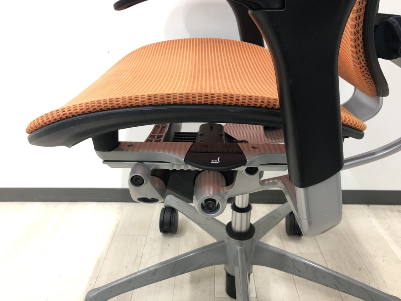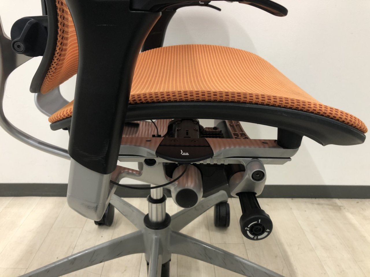 - 座面の前後スライド調整レバーで操作(前後50mm分調整で)できます。(グラデーションサポートメッシュタイプを除く)