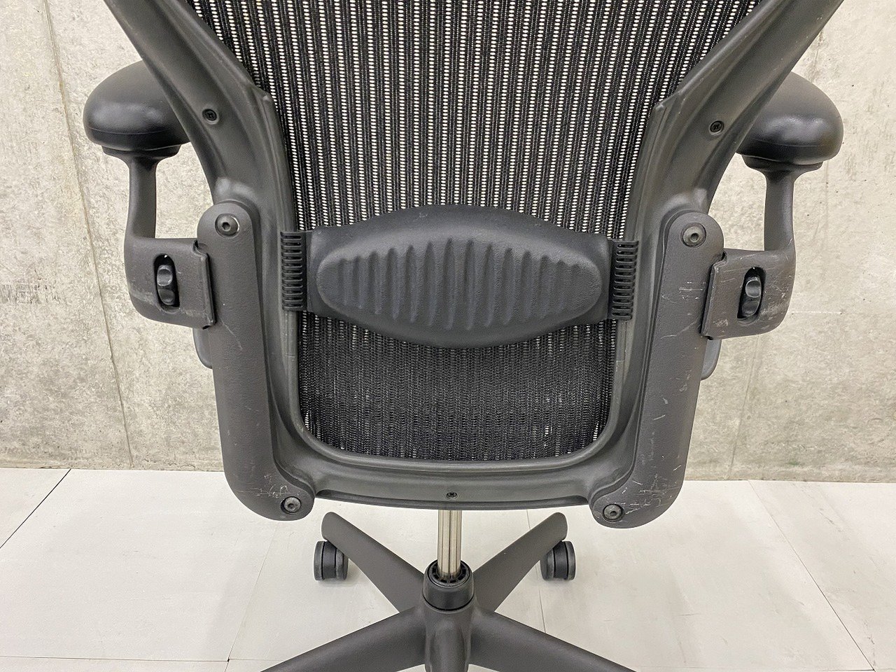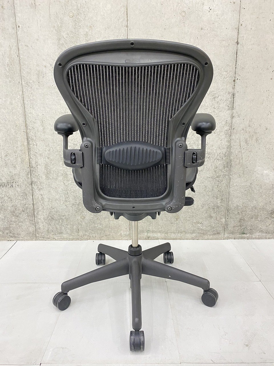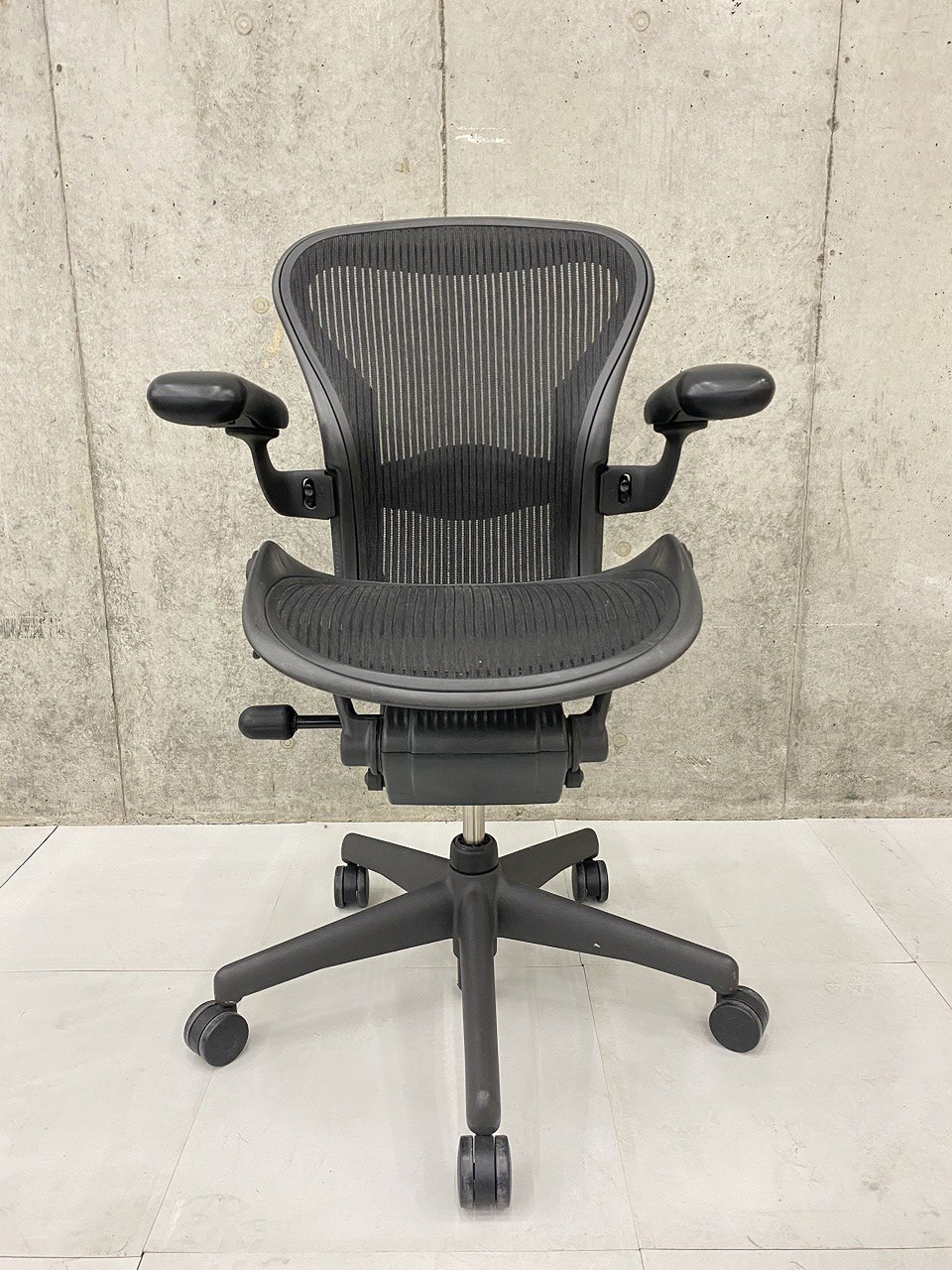 【★状態イマイチのためお安く!】■ハーマンミラー製 アーロンチェア Bサイズ 固定肘 ※キズあり・ランバーサポート無・昇降ガス圧弱めのためお安く!【訳あり特価品】