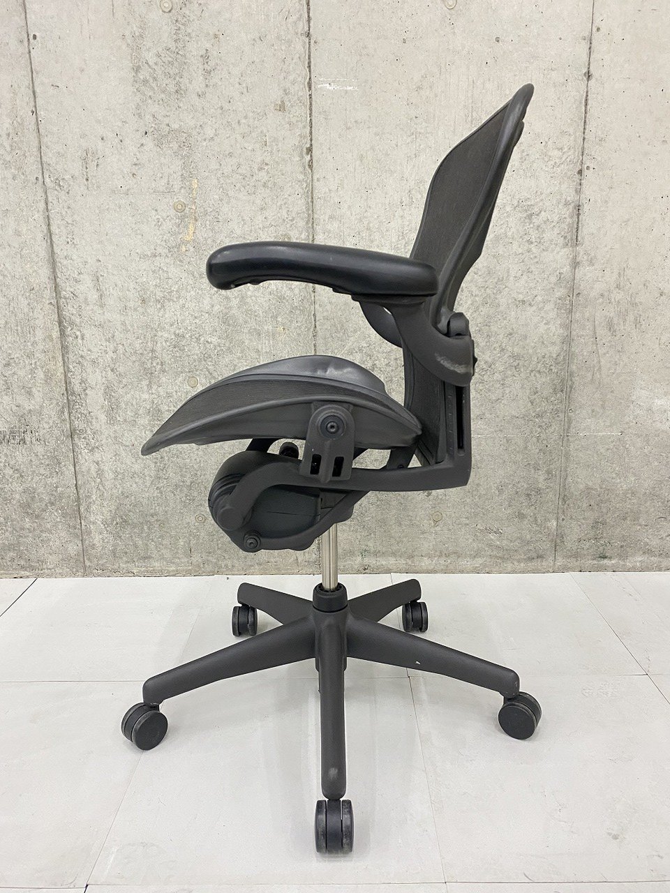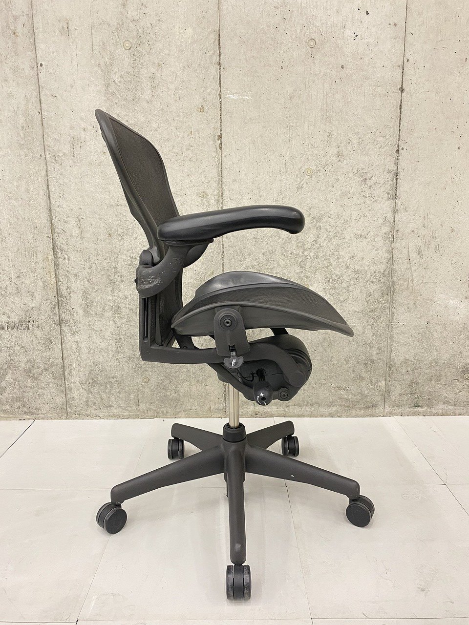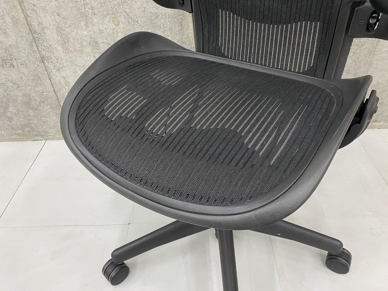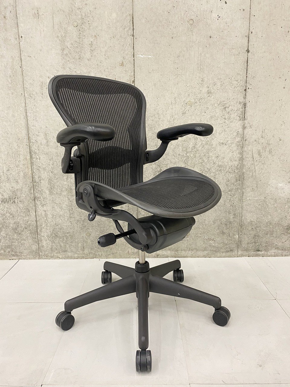 【★状態イマイチのためお安く!】■ハーマンミラー製 アーロンチェア Bサイズ 固定肘 ※キズあり・ランバーサポート無・昇降ガス圧弱めのためお安く!【訳あり特価品】