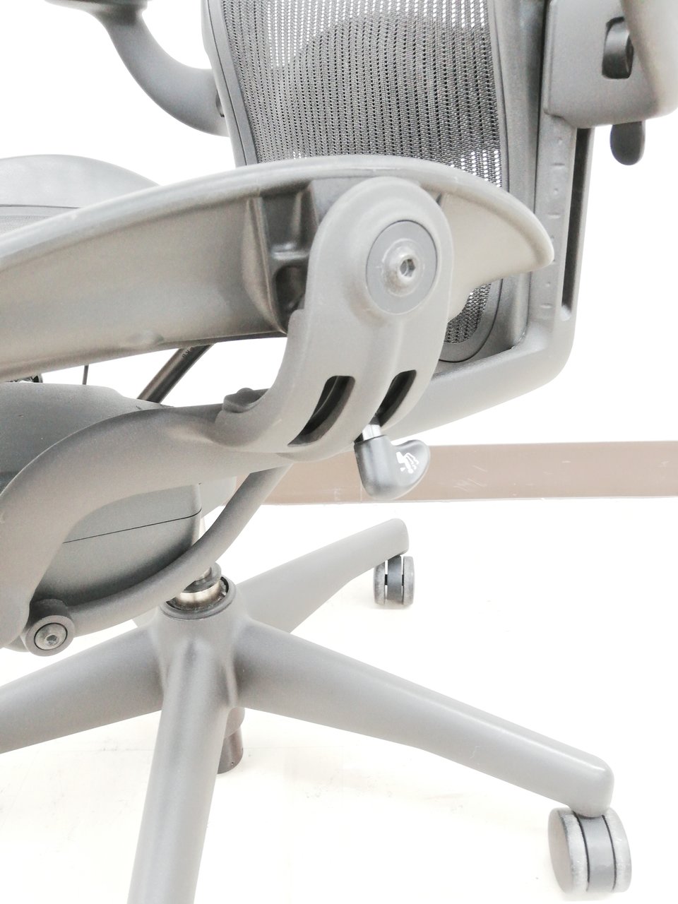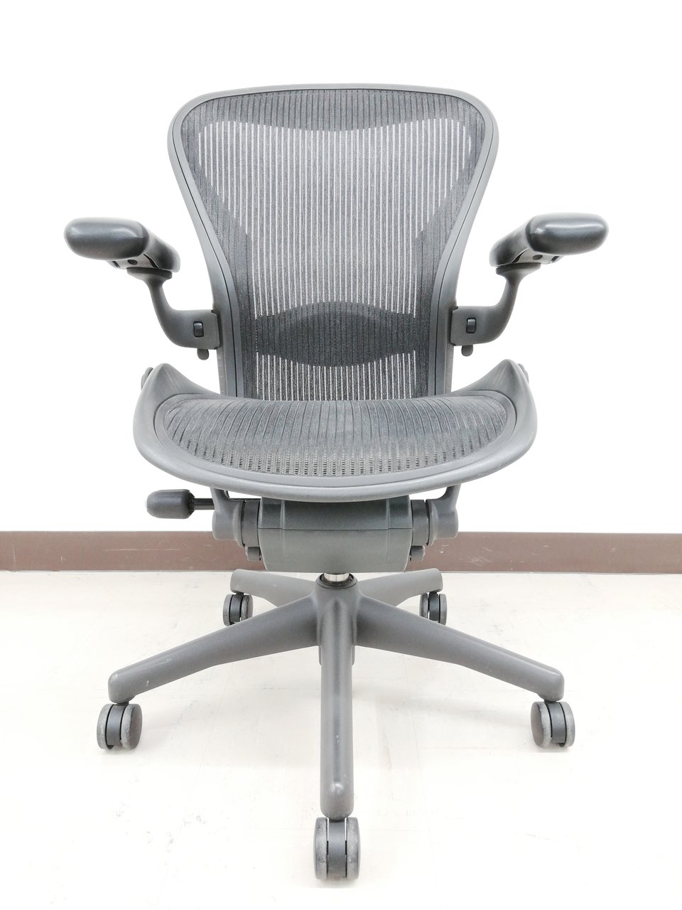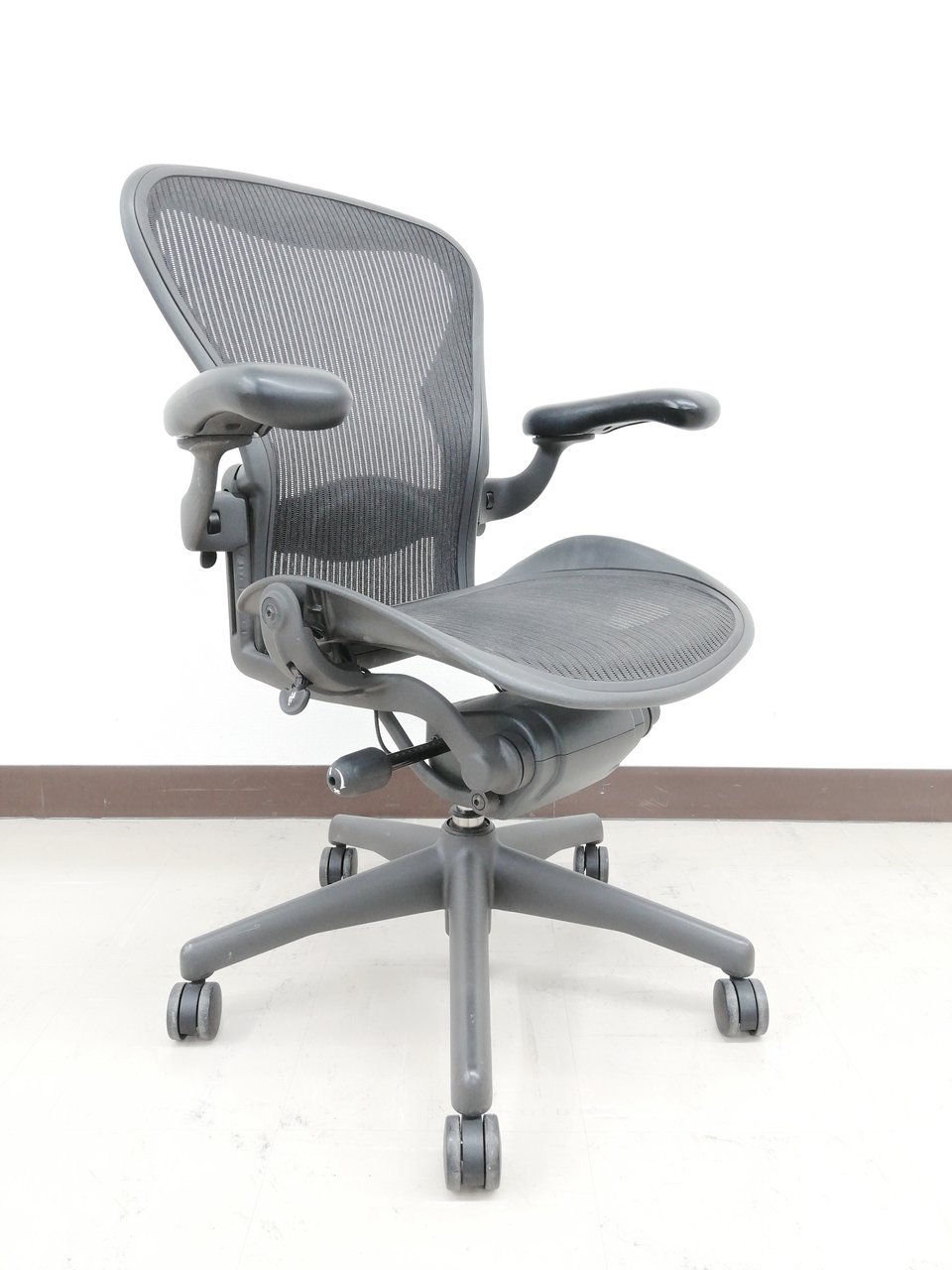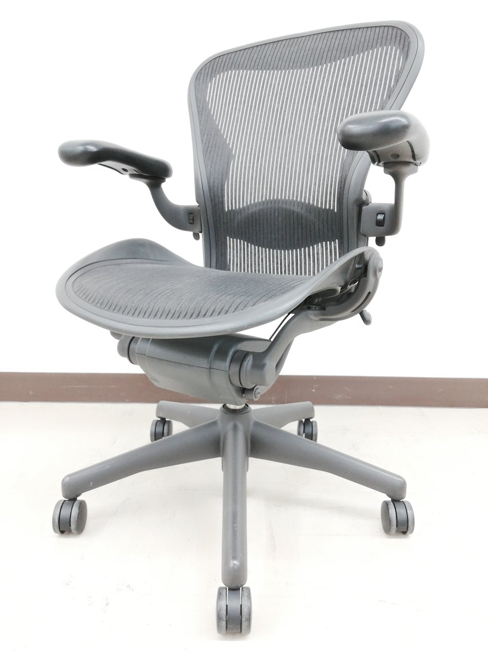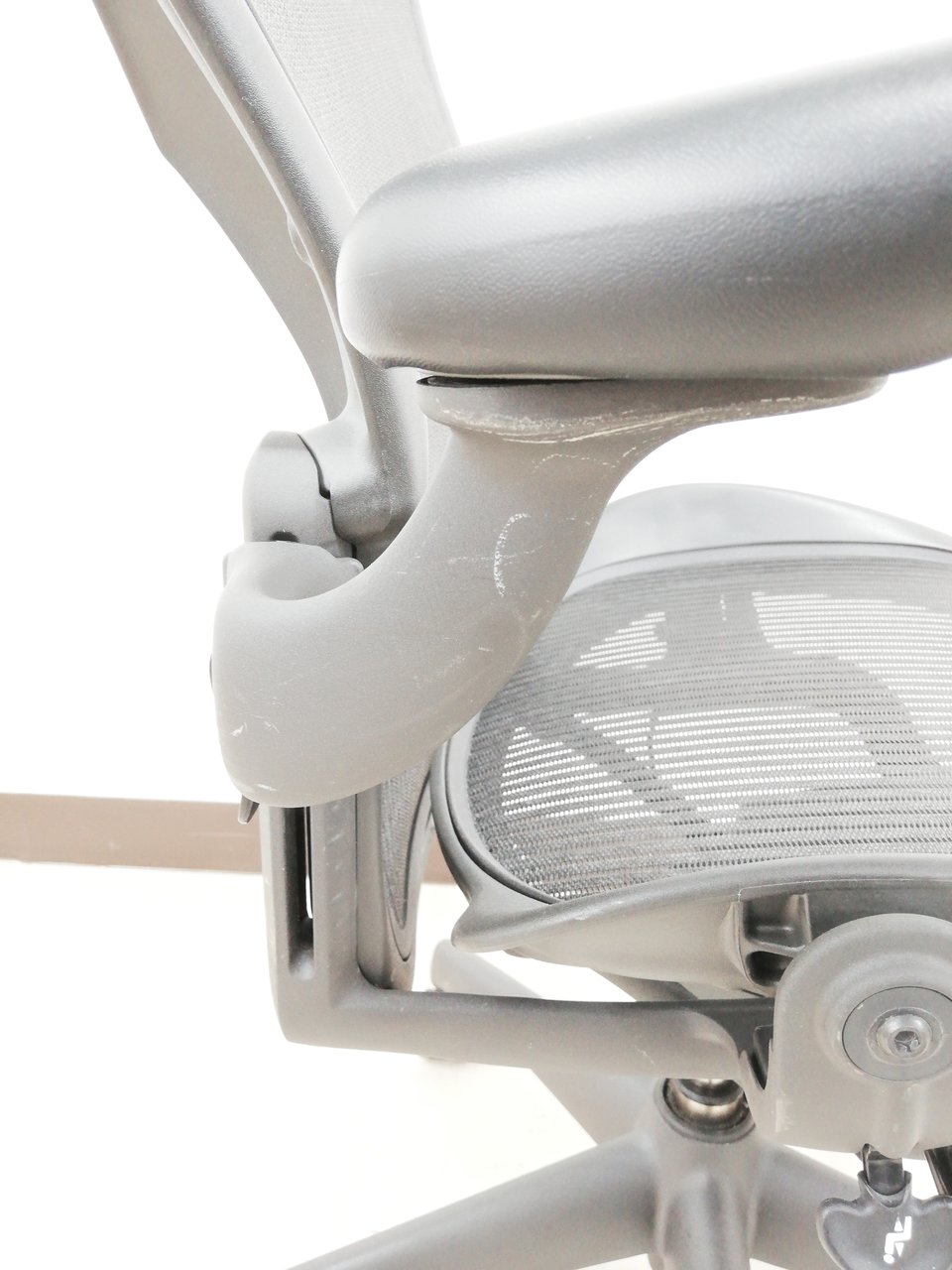 【★状態イマイチのためお安く!】■ハーマンミラー製 アーロンチェア Bサイズ 固定肘 ※キズあり・ランバーサポート無・昇降ガス圧弱めのためお安く!【訳あり特価品】