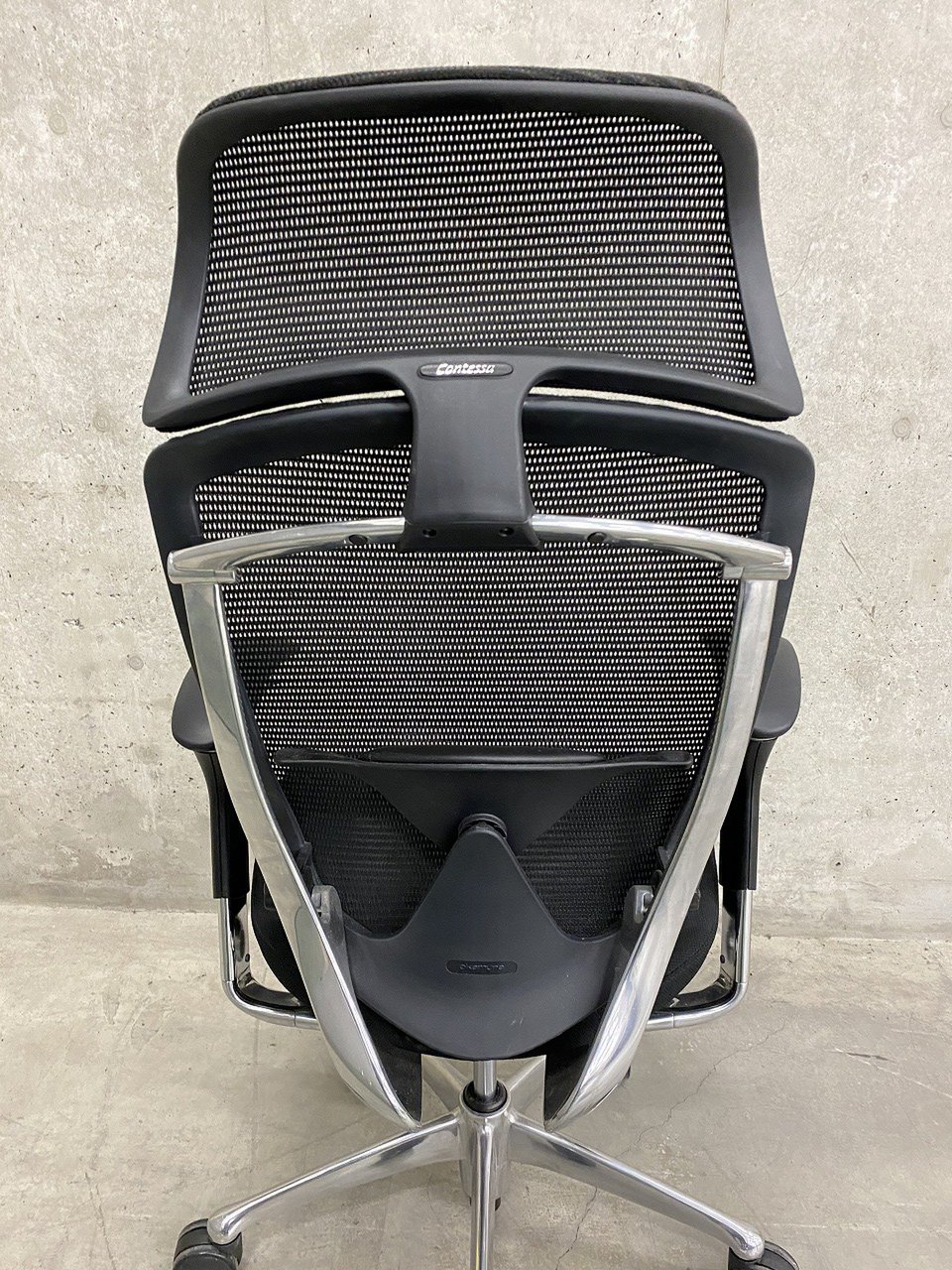 【世界で認められた革新的タスクチェア!人間工学に基づいた快適な座り心地を実現!】■オカムラ(okamura)製 コンテッサ(Contessa)チェア ハイバック 肘付き 背面メッシュ ■可動肘・ランバーサポート付 ■ブラック ※肘スレ有