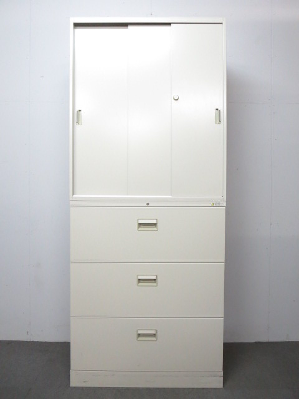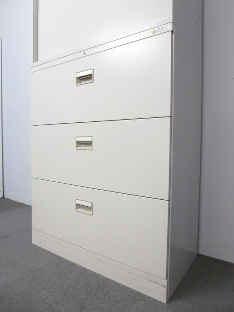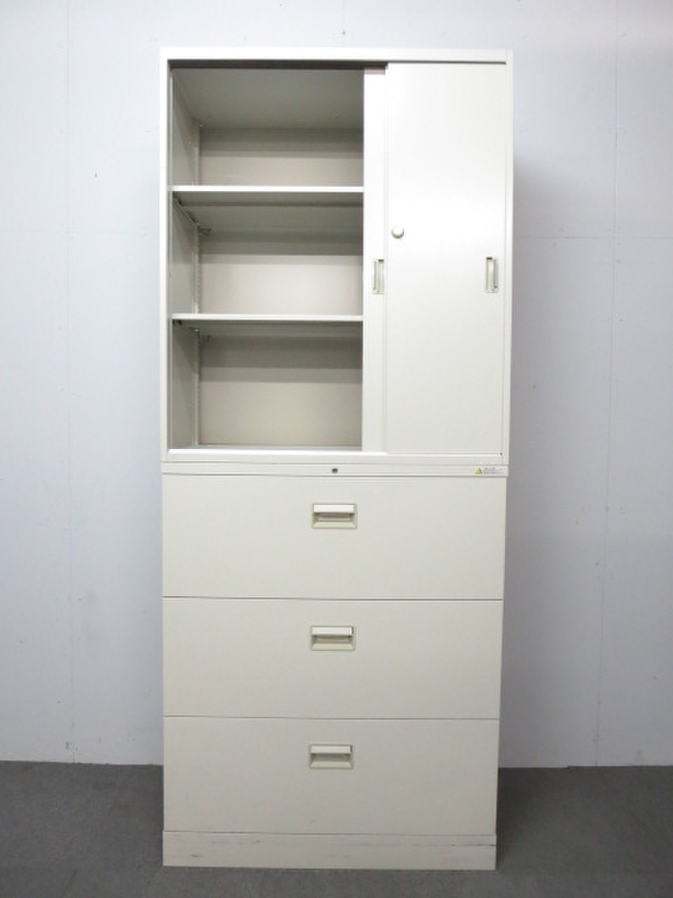 - 一部不具合ありそ引出の開閉不可、施錠不可、棚板無しといったの書庫の本来の効用を果たすための機能以外の一部が使用不可(例、扉、引出の開閉がしづらいなどがある。 )
