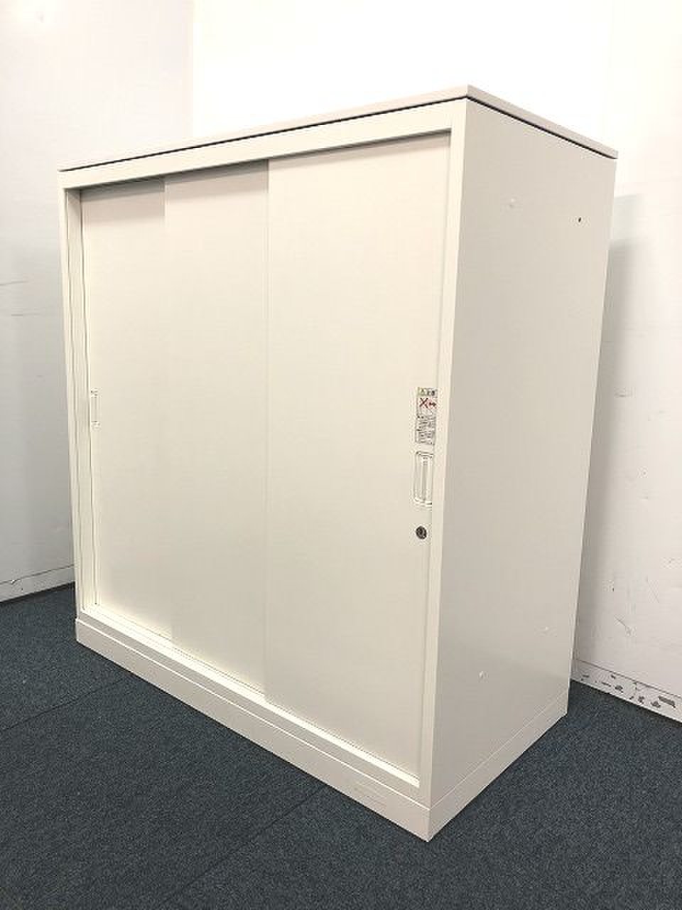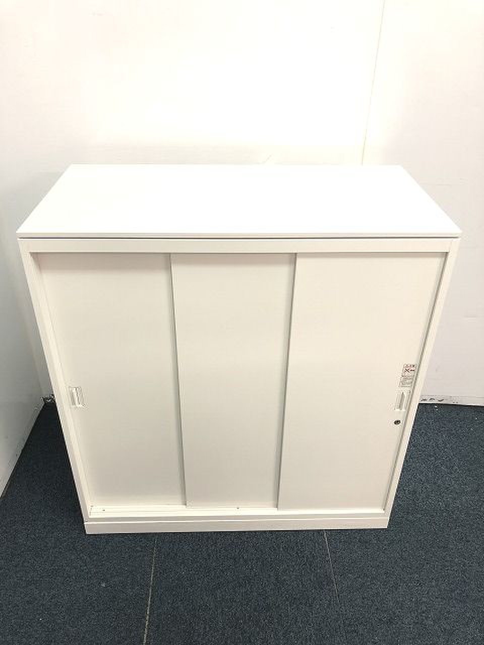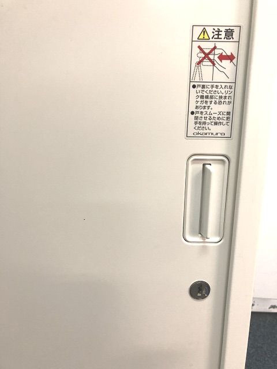 オカムラ製 人気レクトラインシリーズ ホワイト シリンダー W800xD450XH1050 3枚引戸 ※ベースなし 3枚引き違い書庫!!