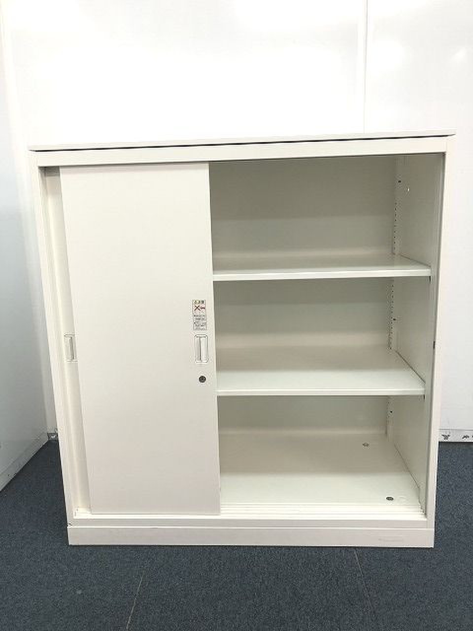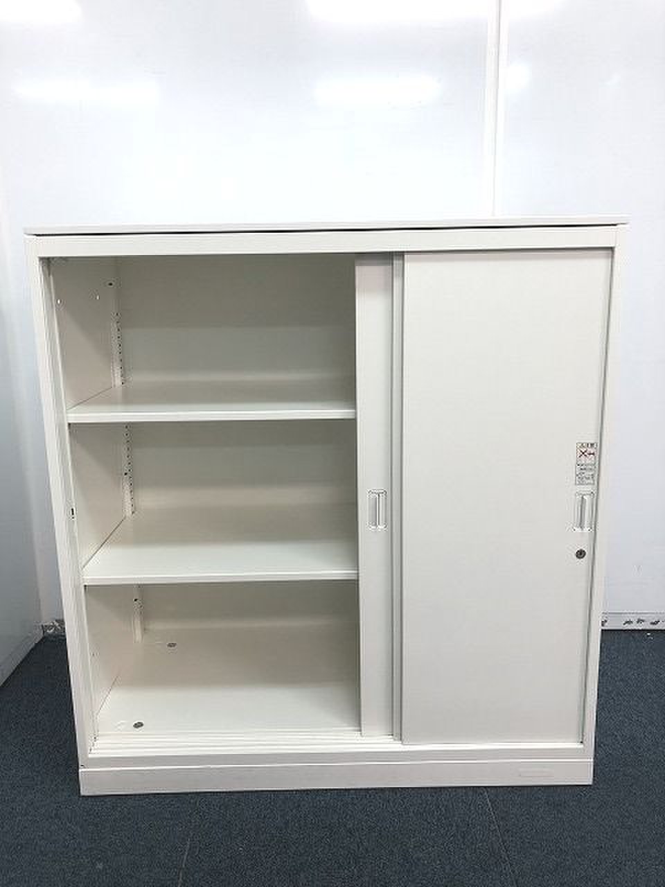 2枚引き戸書庫 オカムラ レクトライン 鍵付き シリンダー錠 ホワイト 天板無し スライド式の扉のため導線を邪魔しません