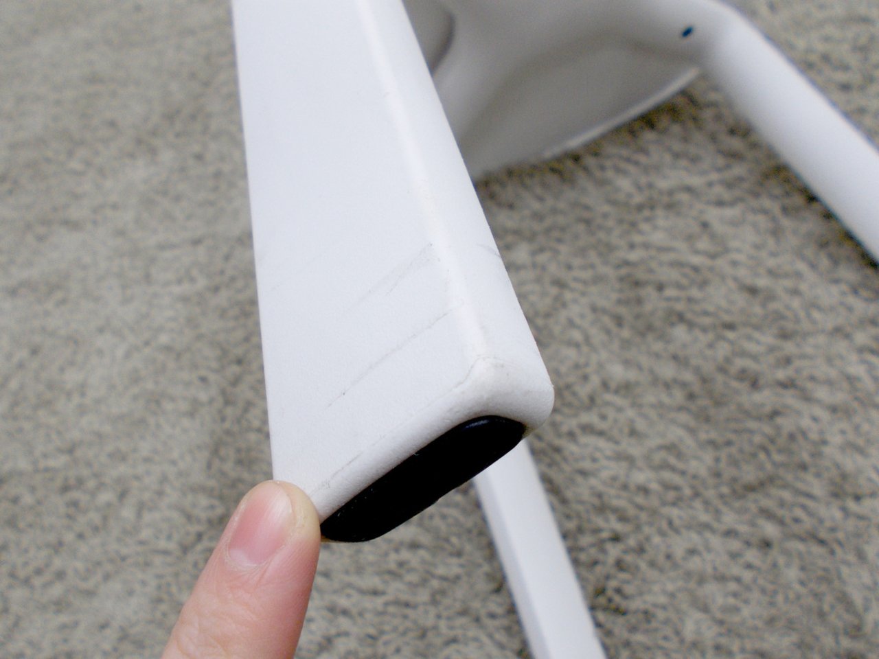 - かなり強い濃い黄ばみ・変色が商品全体にある。(例、座面・背もたれ、脚部等にある。)