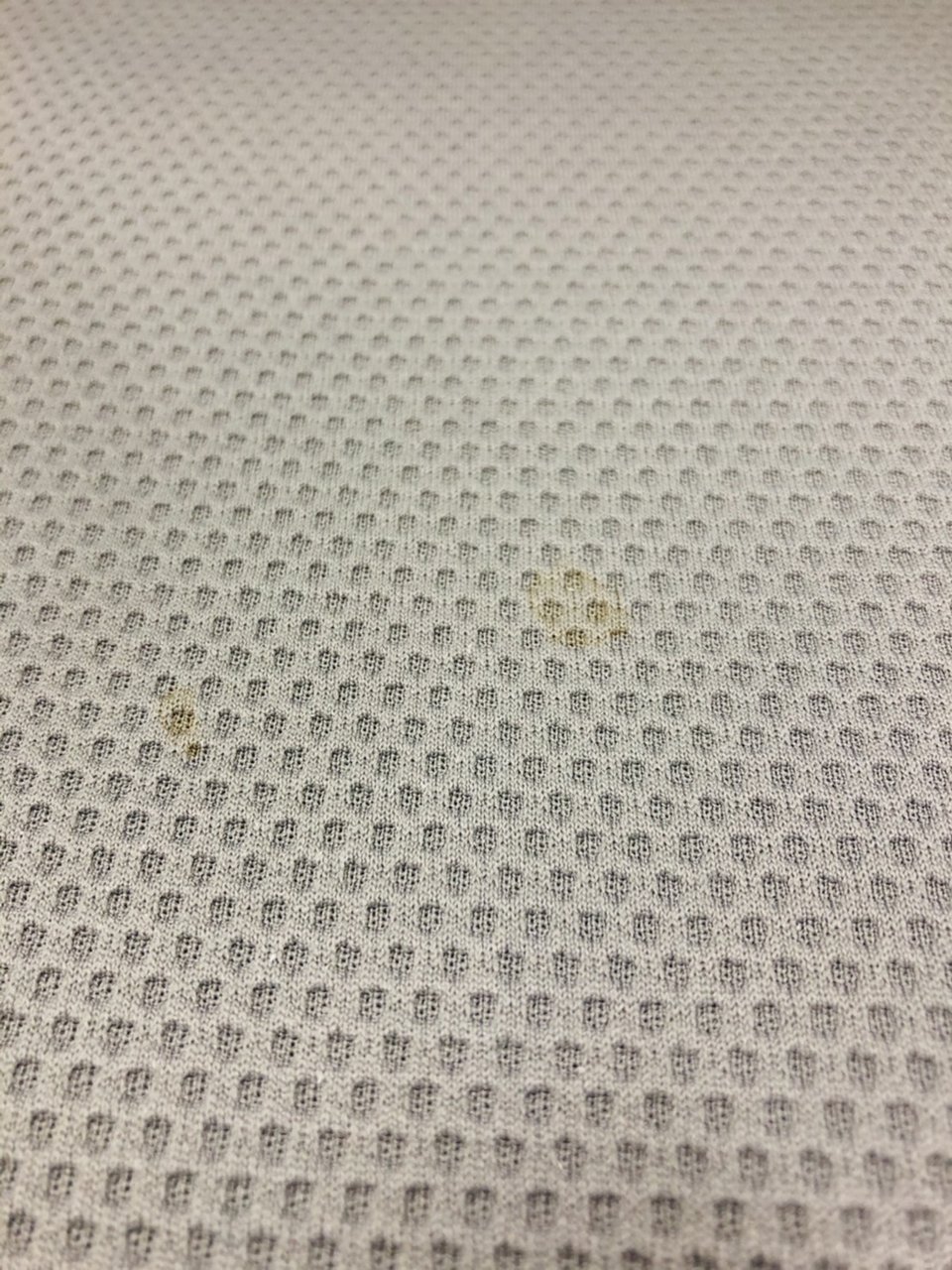 - あり黄ばみ・変色が広い範囲にうっすらある、または濃い黄ばみ・変色が一部ある。(例、座面・背もたれ、脚部等にある。)