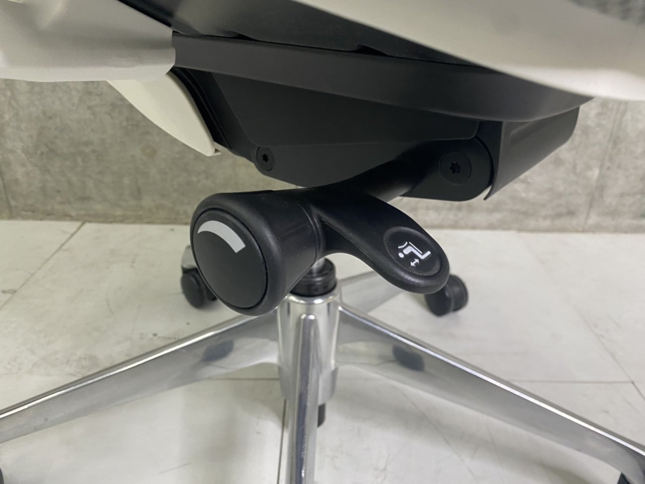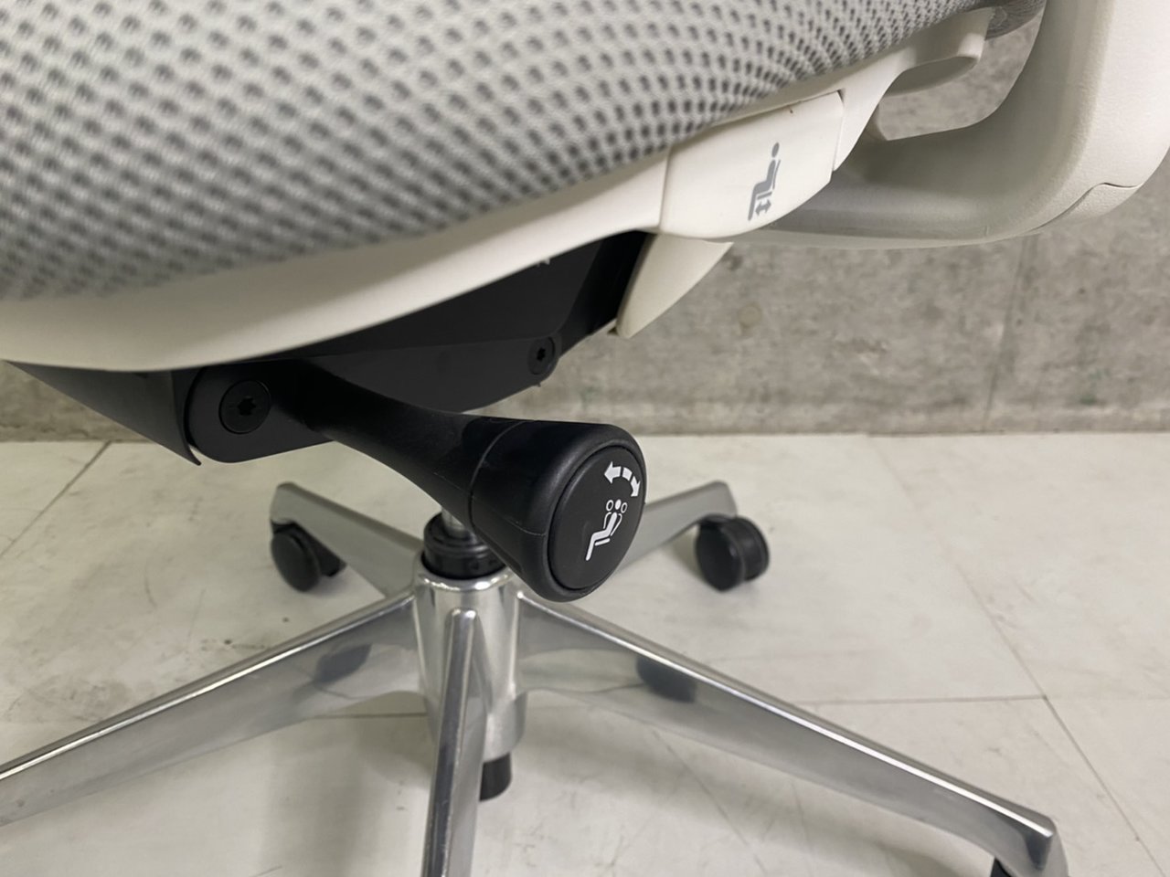 - 座面右下のダイヤル操作で、リクライニングの強弱調整が行えます。これまでのダイヤル式よりも、少ない回転数で、最弱?最強の調整が可能です。