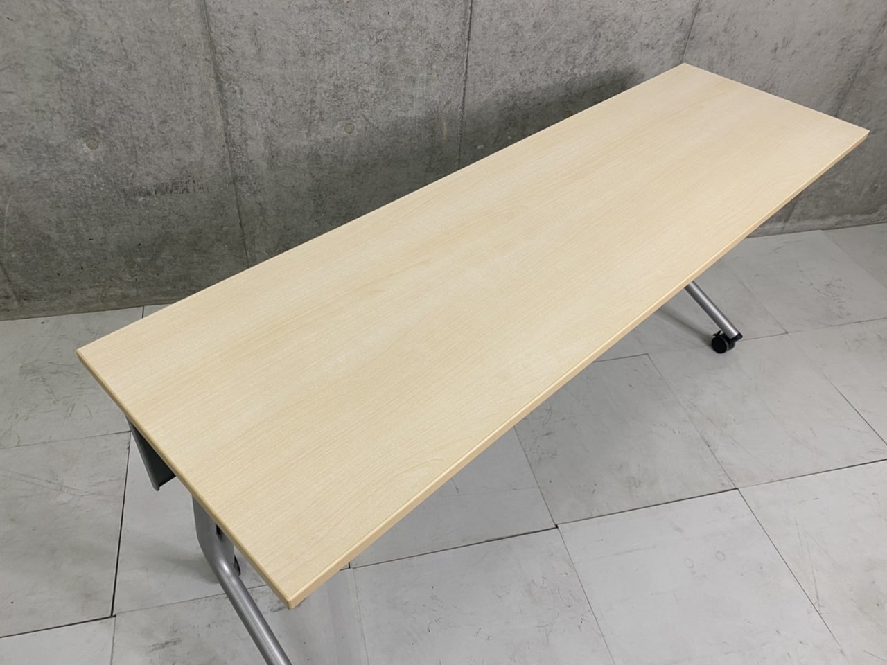 【定価約8万円】【天板ナチュラルカラーの人気サイドスタックテーブル!2~3人使用に最適!】■オカムラ(okamura)製 ネスティア(NESTIA)シリーズ サイドスタックテーブル フラップタイプ W1800×D600㎜ ■幕板付 ■木目ナチュラル