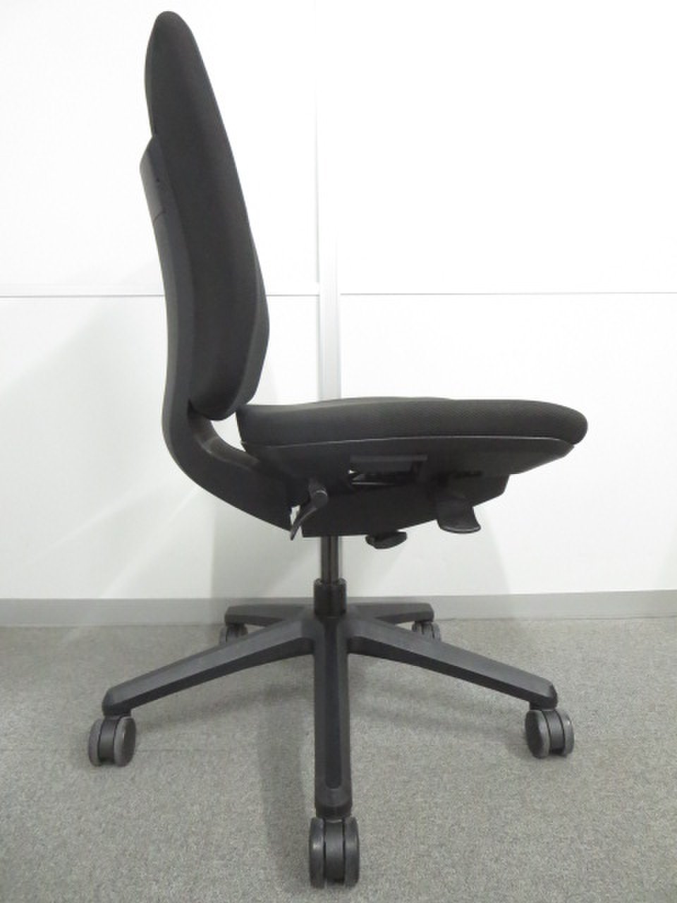 従来のスタンダードチェアーよりも大きめのシート幅と、110㎜の範囲で調節できるロングストローク昇降。