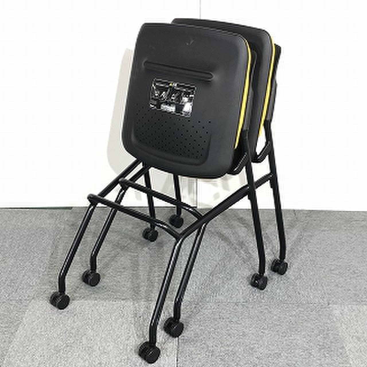 【関東倉庫在庫品】【フレキシブルに使える!使わない時は省スペースで収納可能!】■オカムラ製 ルナ ネスティングチェア ■イエロー【弊社使用欄:A01008461】【ECBMC】