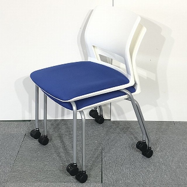 【重ねて収納可能!スペースの削減にお勧めなスタッキングチェア!】■コクヨ(KOKUYO)製 CK-160 スタッキングチェア ミーテイングチェア ■背カバーあり ■ブルー×ホワイトシェル