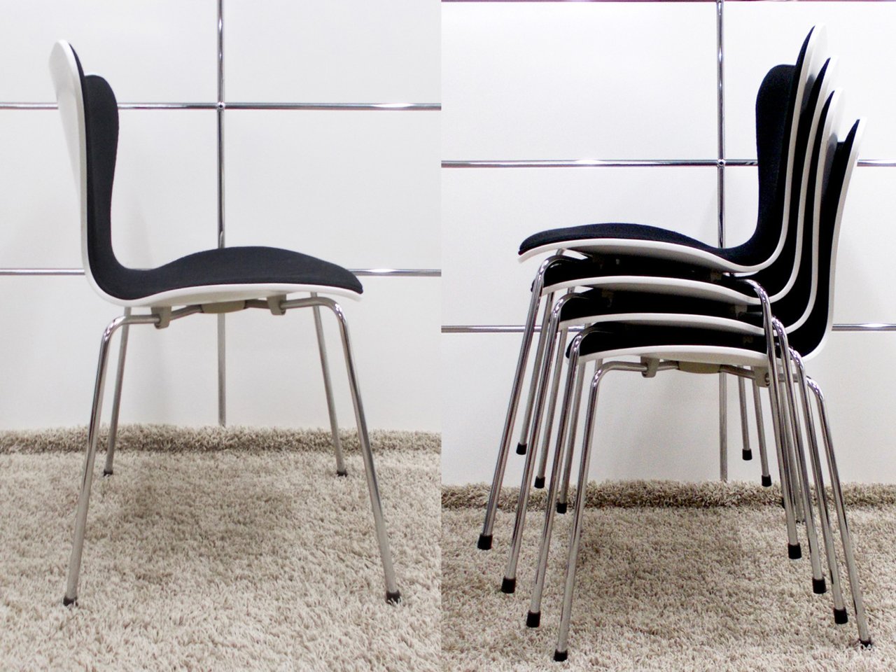 Fritz Hansen/フリッツハンセン セブンチェア4脚セット 布張りフロントパディング ホワイトXブラック 北欧 ヤコブセン- デザイナーズ家具センター