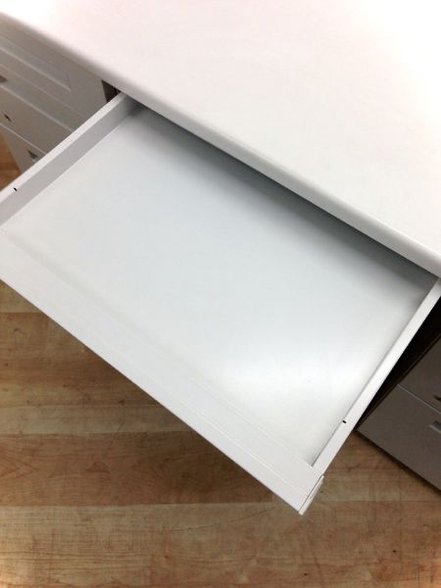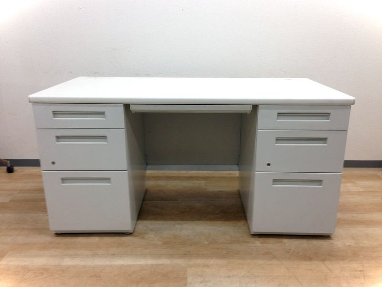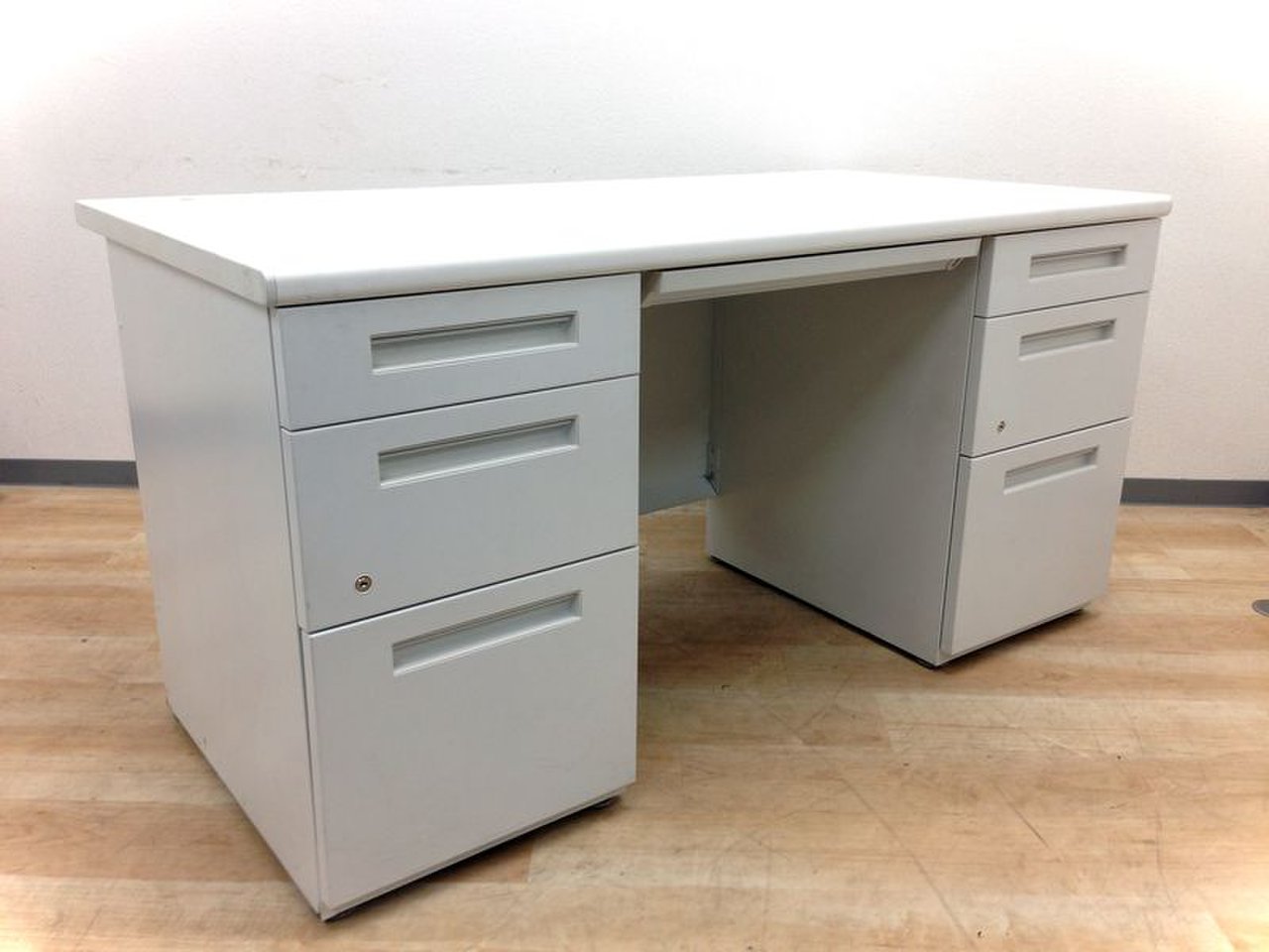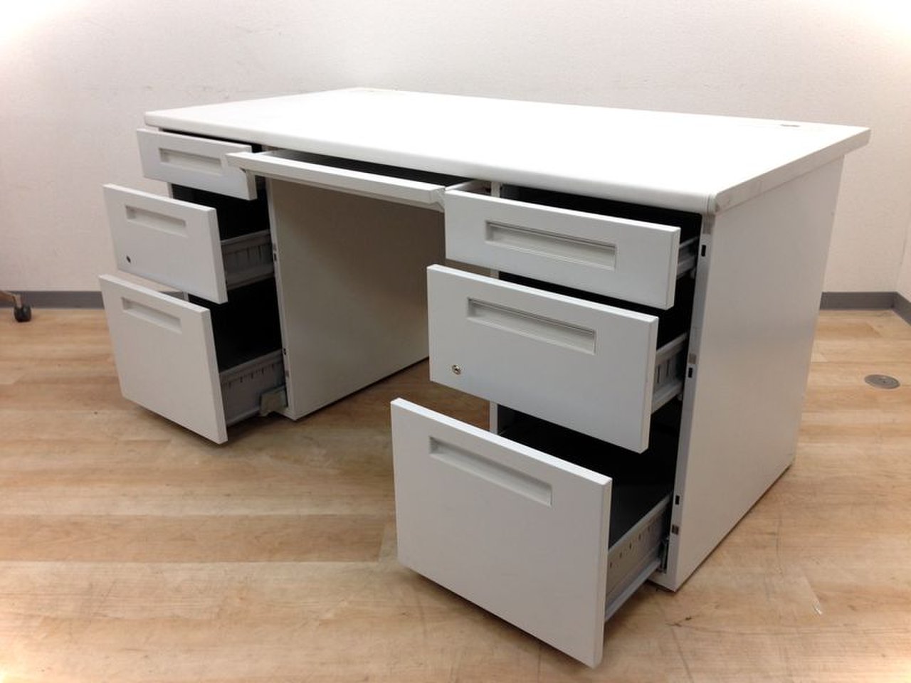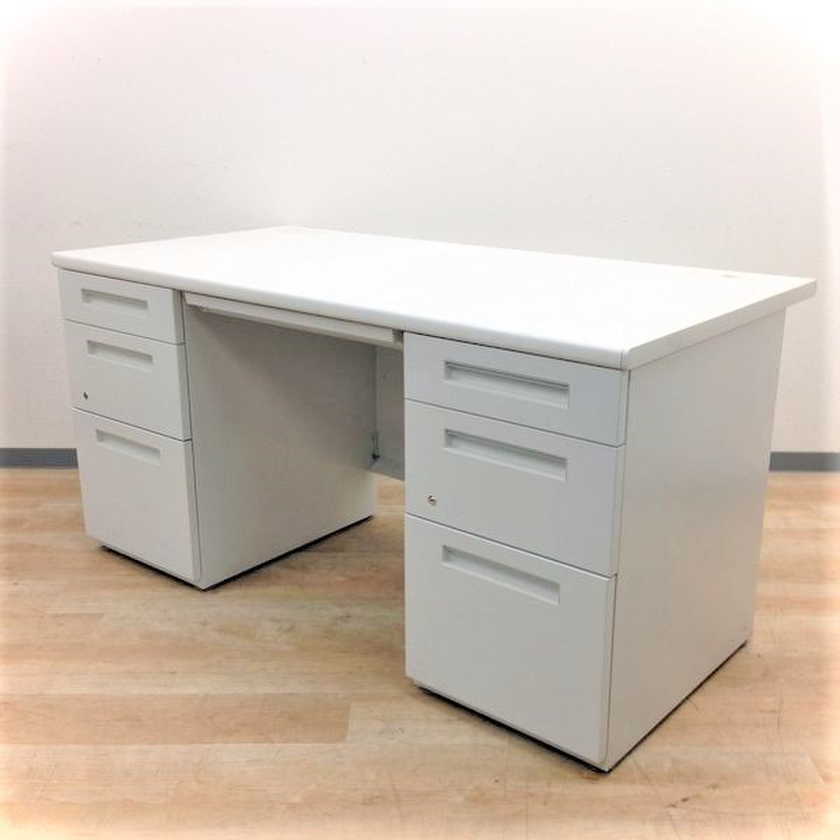 広々使えて収納力抜群!上長席にもおすすめ!イナバ/両袖机/横幅1400/ホワイト- つくば店
