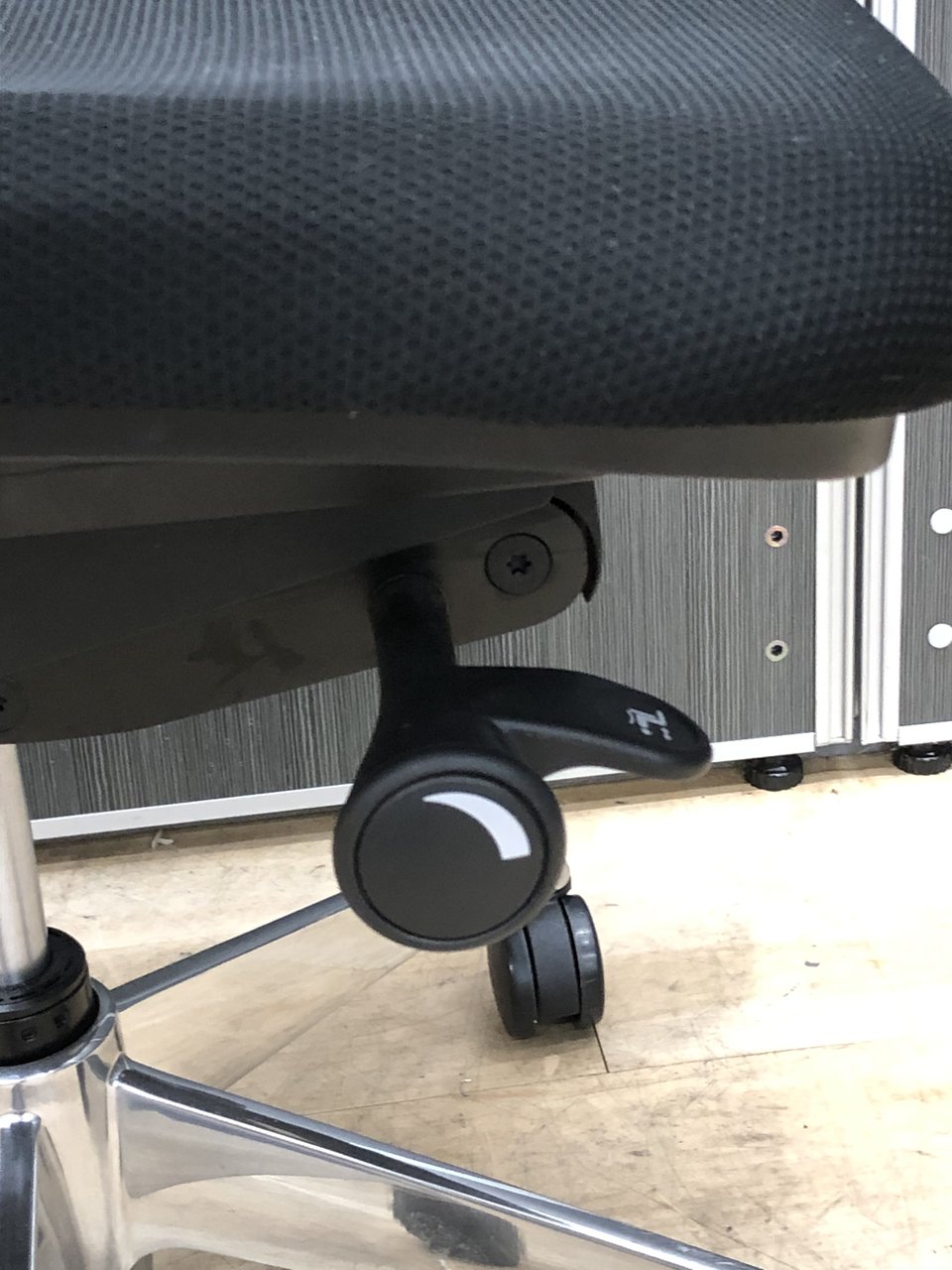 - 座面右下のダイヤル操作で、リクライニングの強弱調整が行えます。これまでのダイヤル式よりも、少ない回転数で、最弱?最強の調整が可能です。