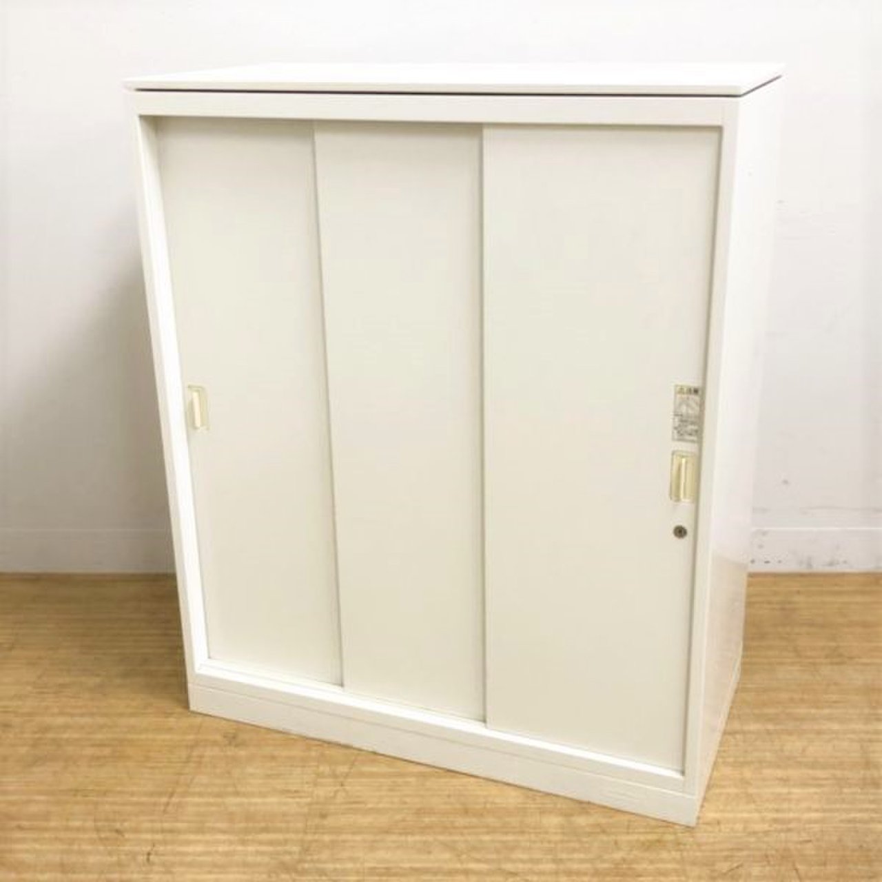 オカムラ製 人気レクトラインシリーズ ホワイト シリンダー W800xD450XH1050 3枚引戸 ※ベースなし 3枚引き違い書庫!!