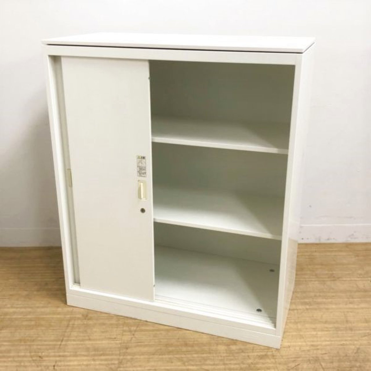 スライド式の扉のため導線を邪魔しません!使い勝手抜群の2枚引き違い書庫が入荷! ■オカムラ/レクトライン/ホワイト 2枚引き戸
