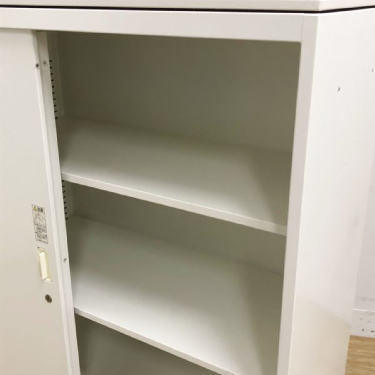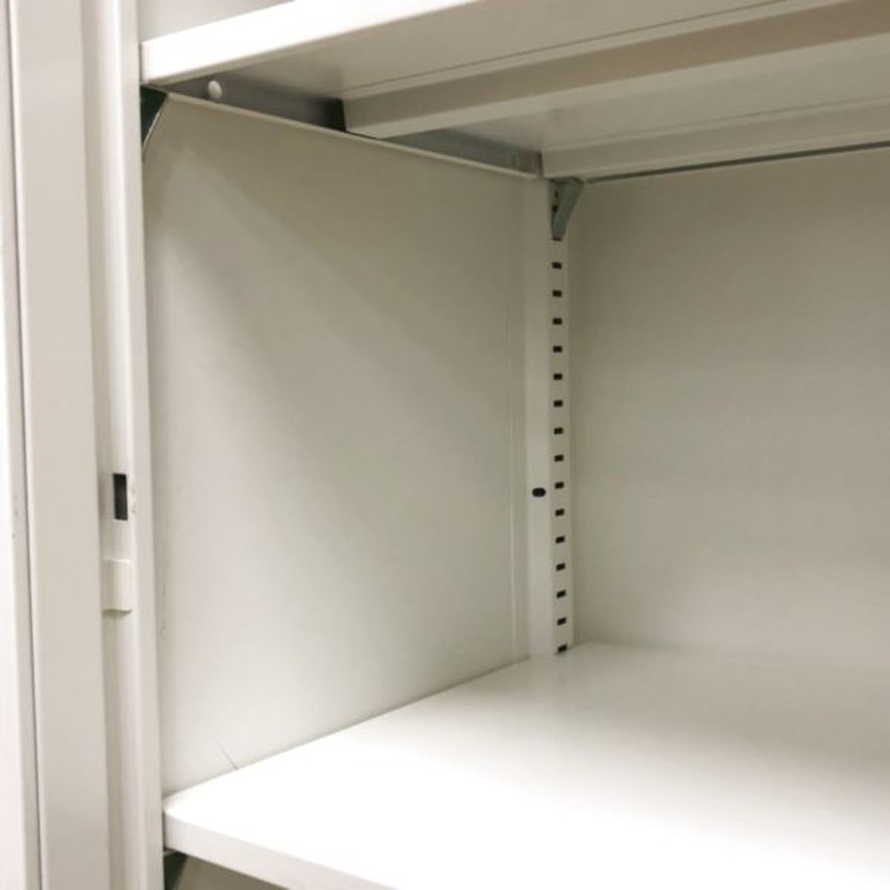 2枚引き戸書庫 オカムラ レクトライン 鍵付き シリンダー錠 ホワイト 天板無し スライド式の扉のため導線を邪魔しません