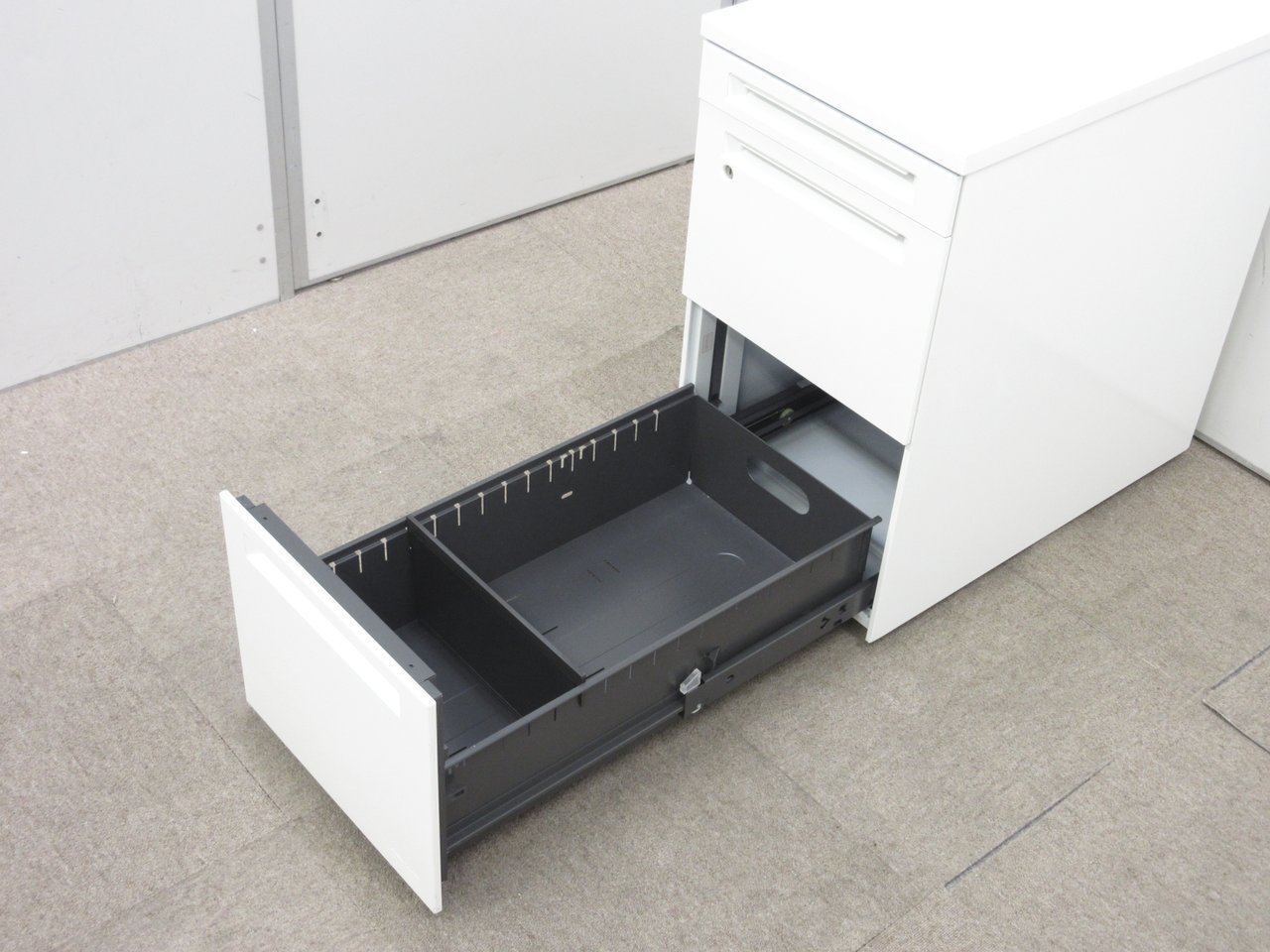 【収納と作業スペースを同時に確保!人気シリーズの脇机!】■オカムラ(okamura)製 アドバンス (ADVANCE) 3段脇机 高さ 720mm ■シリンダー錠 ■ホワイト 【弊社使用欄:A01041635】