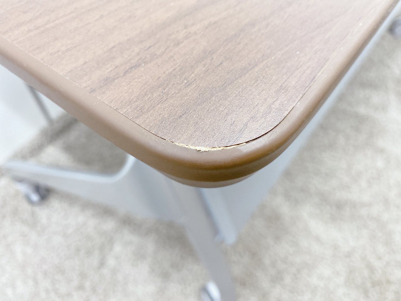- 壊れている天板歪み、アジャスター無し、キャスター使用不可のようにそのテーブルの本来の効用を果たすための機能に不具合がある。