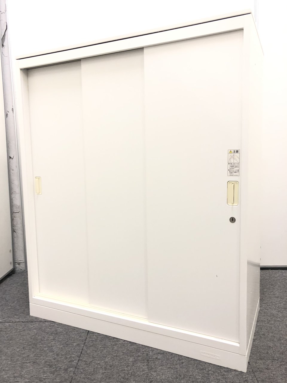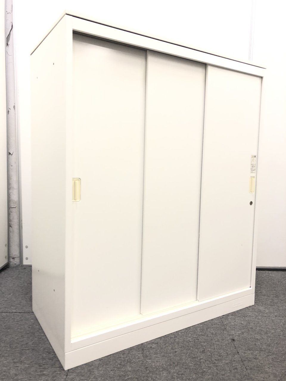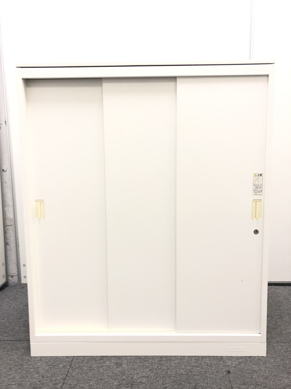 オカムラ製 人気レクトラインシリーズ ホワイト シリンダー W800xD450XH1050 3枚引戸 ※ベースなし 3枚引き違い書庫!!
