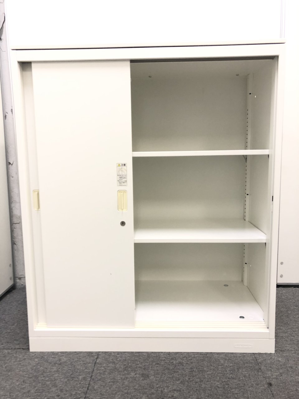スライド式の扉のため導線を邪魔しません!使い勝手抜群の2枚引き違い書庫が入荷! ■オカムラ/レクトライン/ホワイト 2枚引き戸
