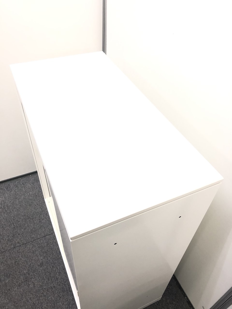 2枚引き戸書庫 オカムラ レクトライン 鍵付き シリンダー錠 ホワイト 天板無し スライド式の扉のため導線を邪魔しません