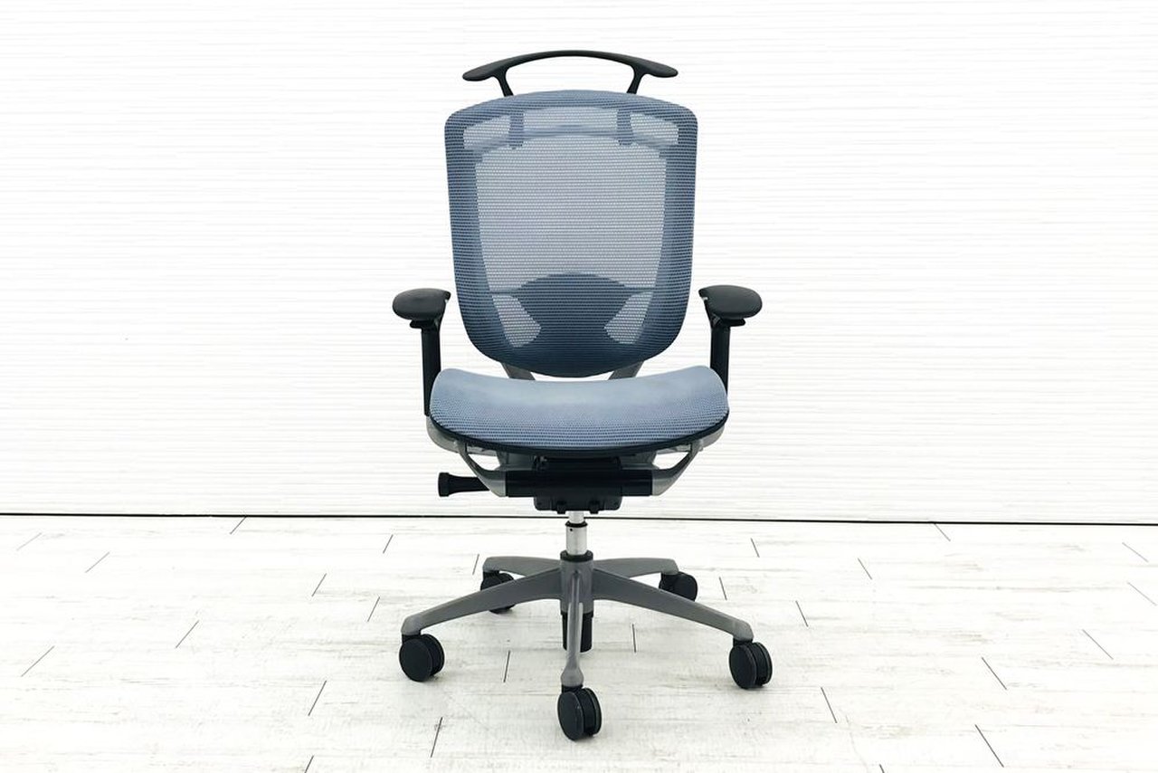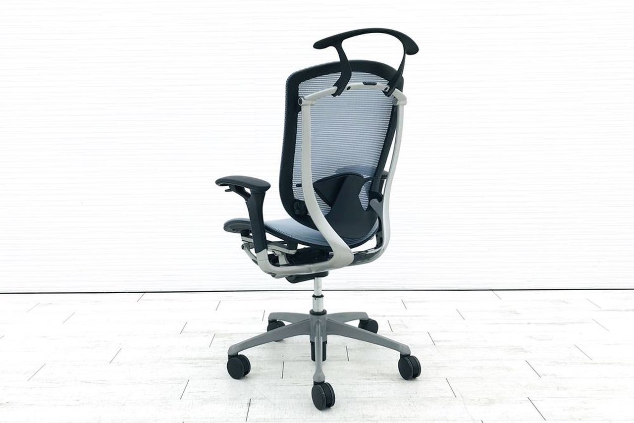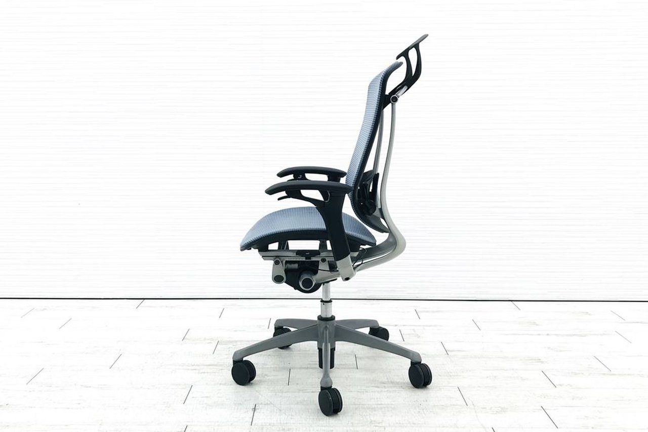 【オカムラ製の最高級チェアが残り1脚限りです!!】オフィスバスターズ 東大阪店 オカムラ製 コンテッサ シリーズ ダークブルー アジャストアーム※可動肘 背/座面メッシュ ランバー 世界で認められた革新的タスクチェア!人間工学に基づいた快適な座り心地を実現! 肘付きハイバックチェア!! 中古 外部倉庫品