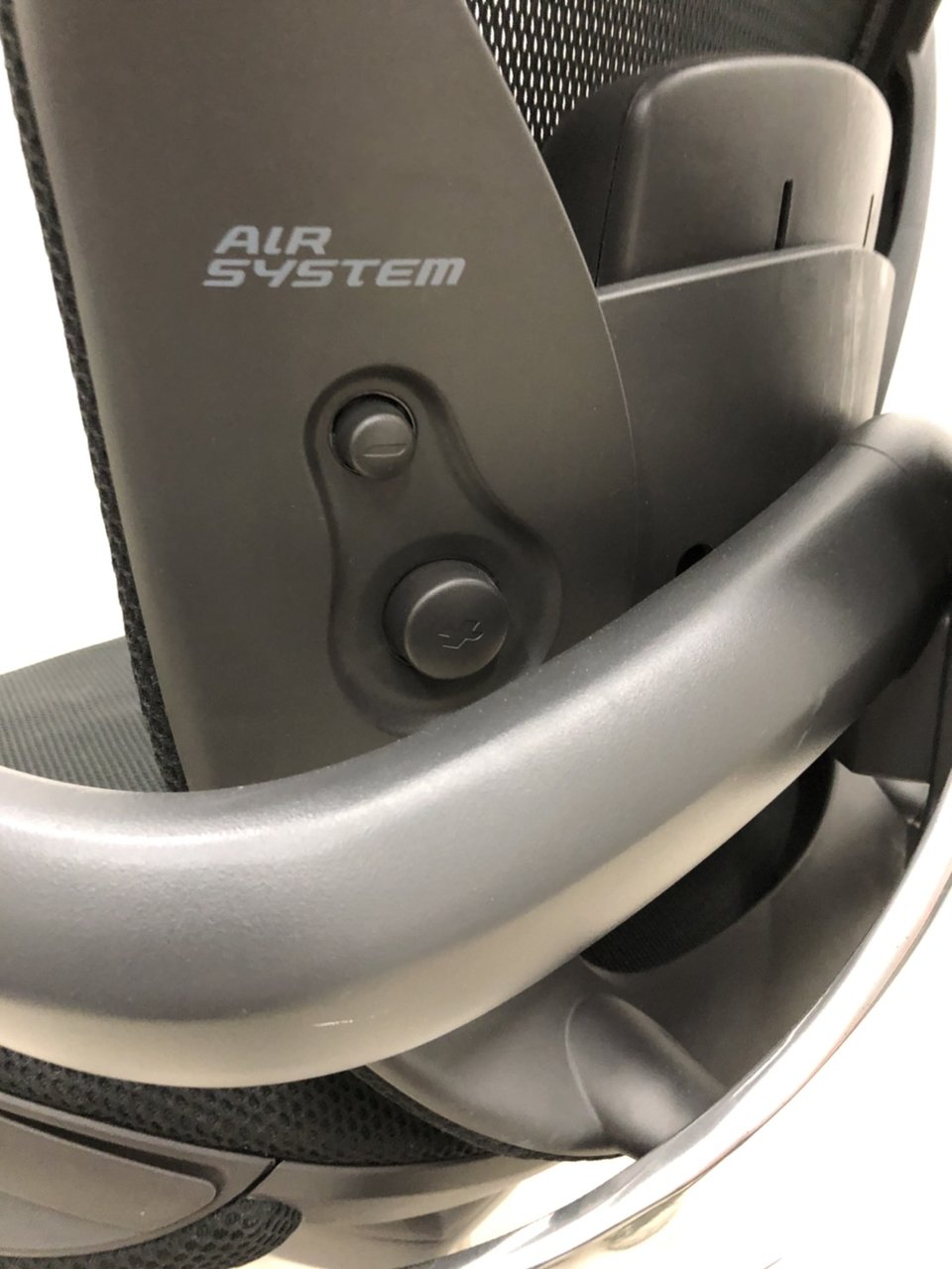 エアランバーサポートは、加圧と減圧のそれぞれのボタンにより空気圧を調節できます。