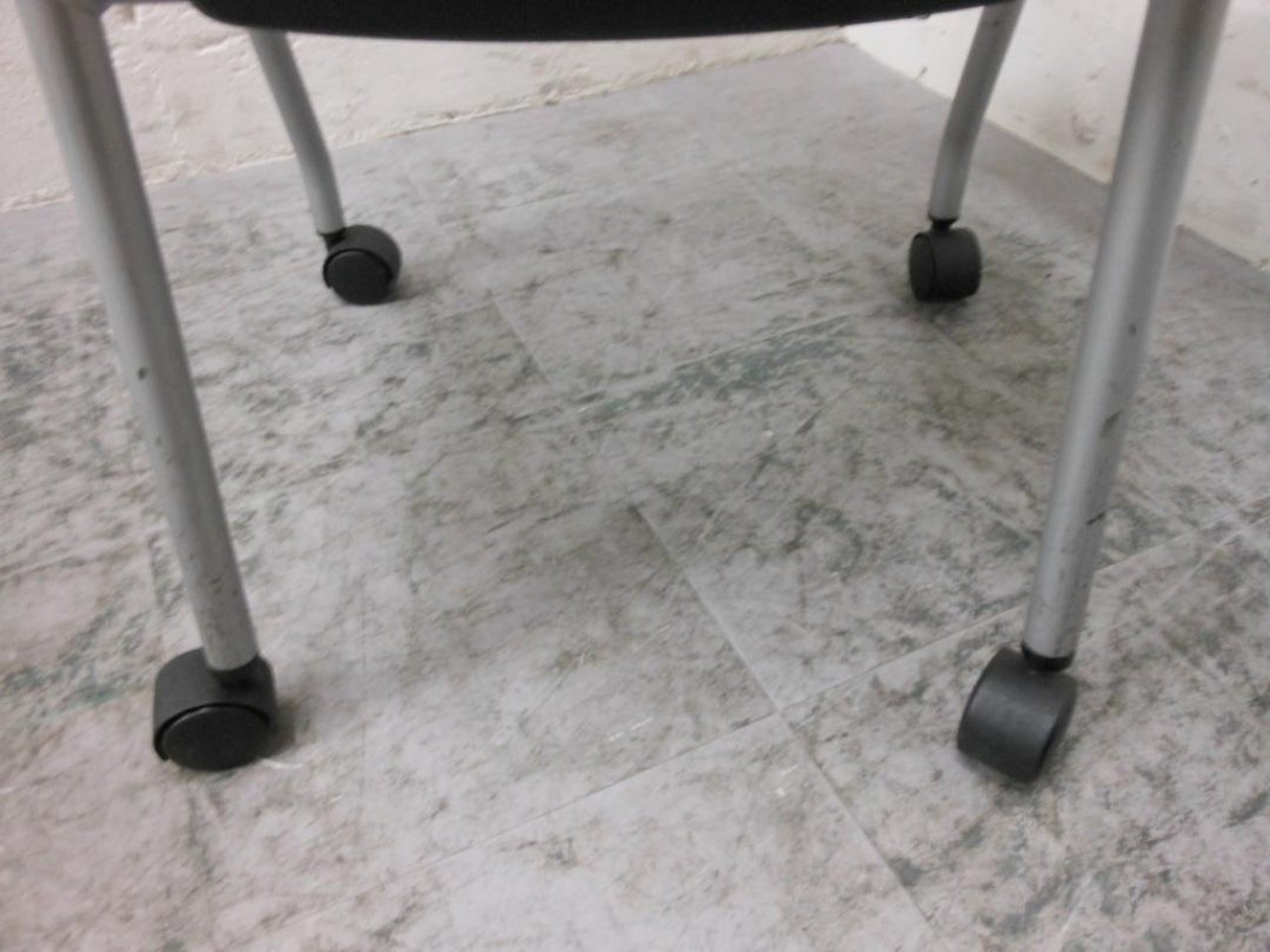 【シンプルスマートなスタッキングチェア!分厚いクッションで長時間でも快適な座り心地!】■スタッキングチェア 肘付ミーティングチェア ■固定肘 ■キャスター付 ■ブラック ■背面樹脂/コクヨ(KOKUYO/プロッティ