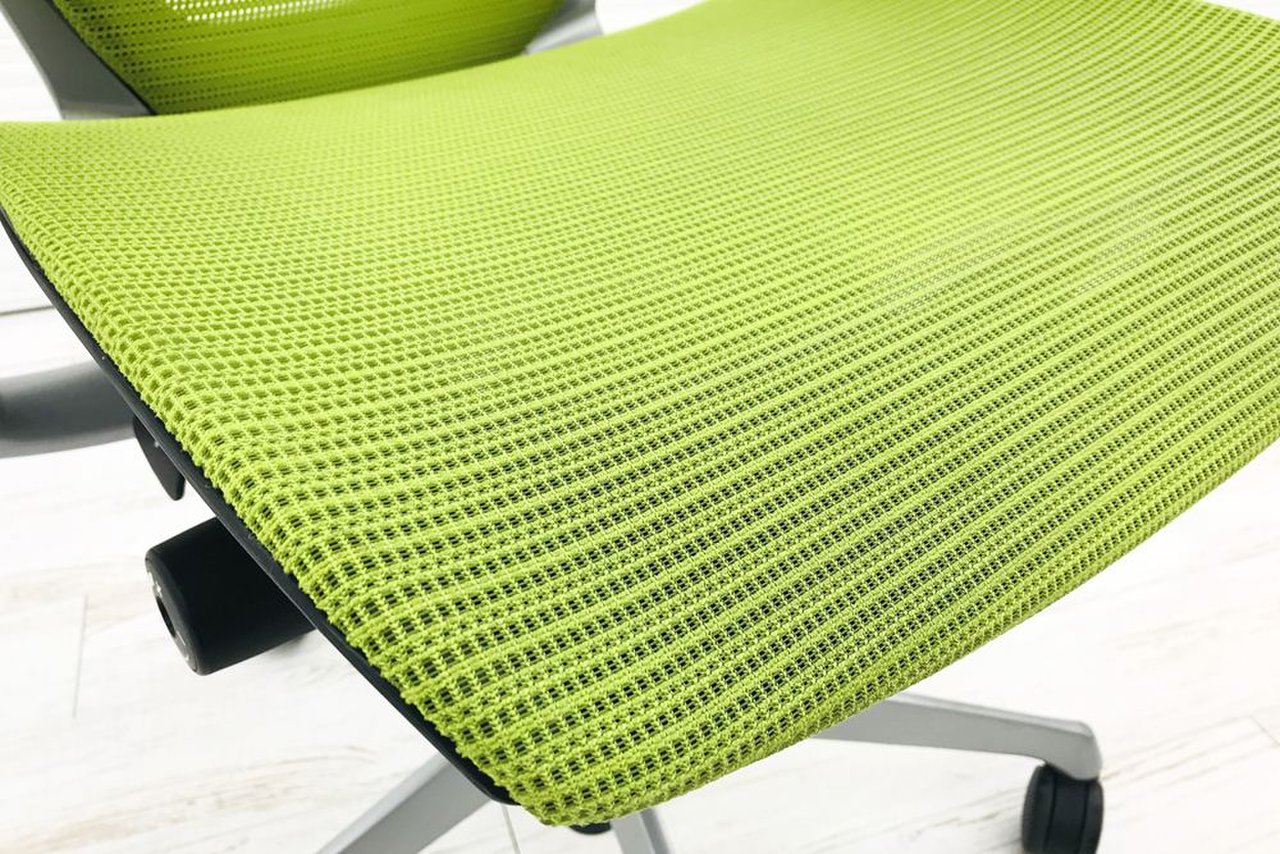 キレイなライムグリーンカラー背もたれ座面もメッシュでむれにくく快適です!!