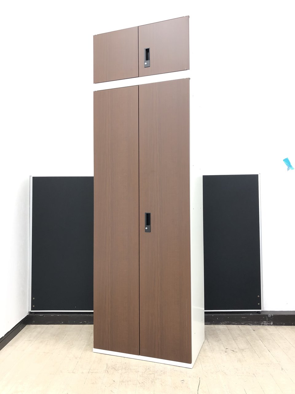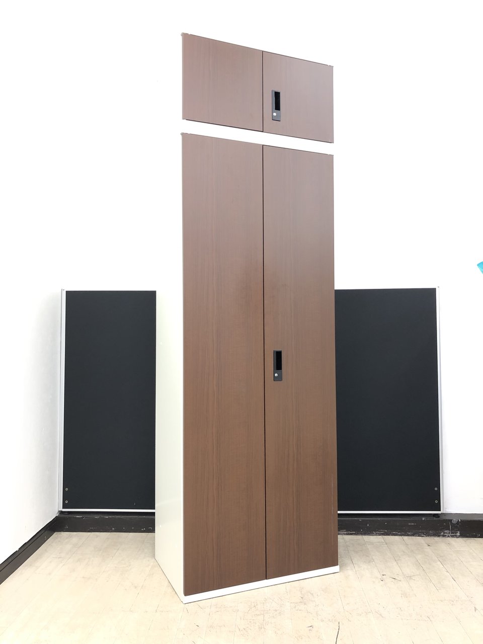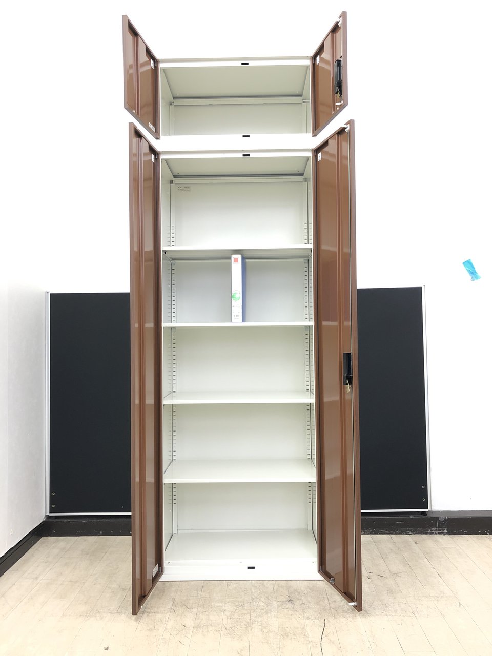 【3台入荷】ブラウン調両開き書庫ホワイトカラー※高さ注意2250mm◆プラス製- 春日部・越谷店