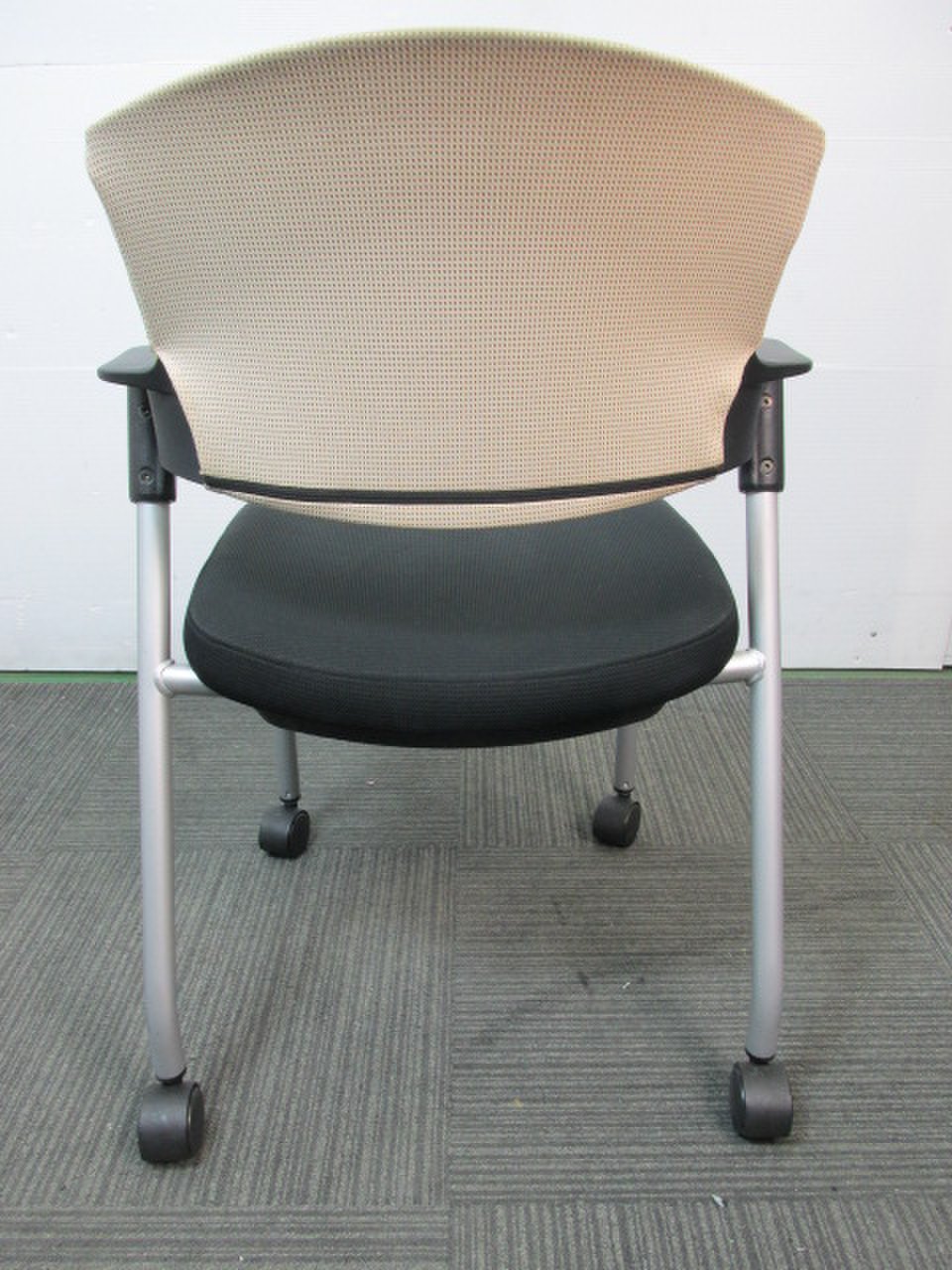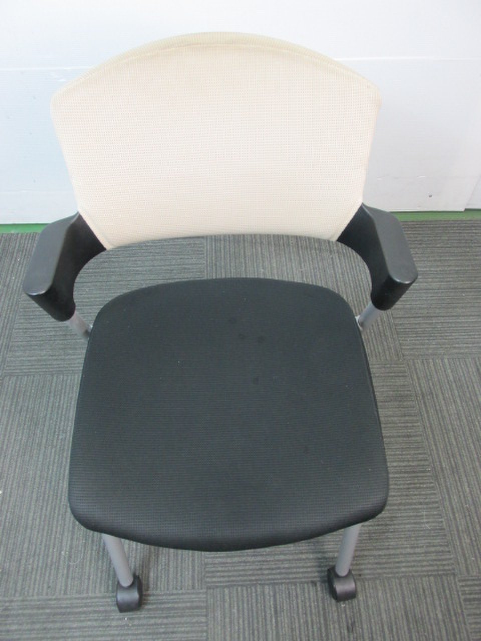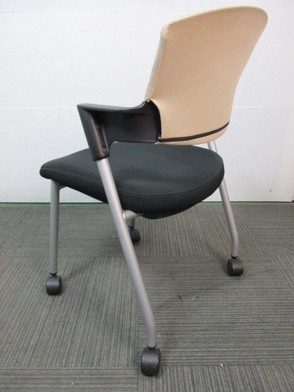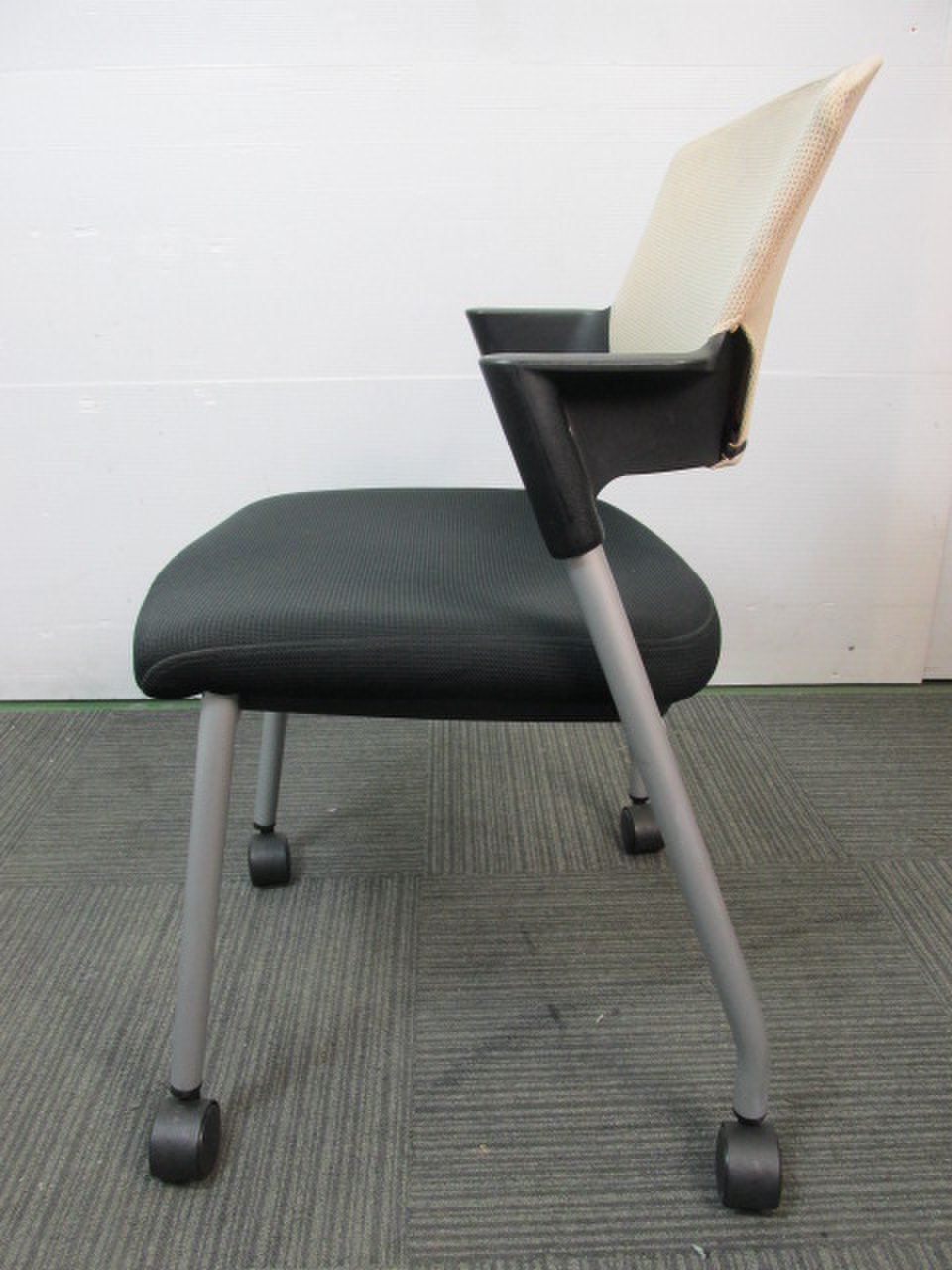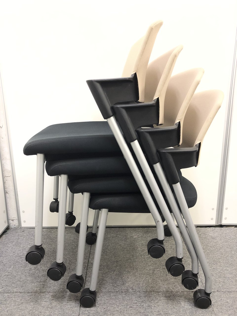 肘付き・キャスター付きの積み重ね可能なスタッキングチェアでございますので