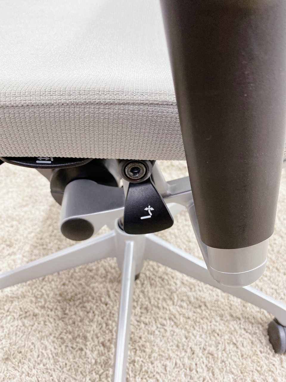 - 座面の右下にあるレバーの操作により座面位置を上下に100mm分調整することが可能です。