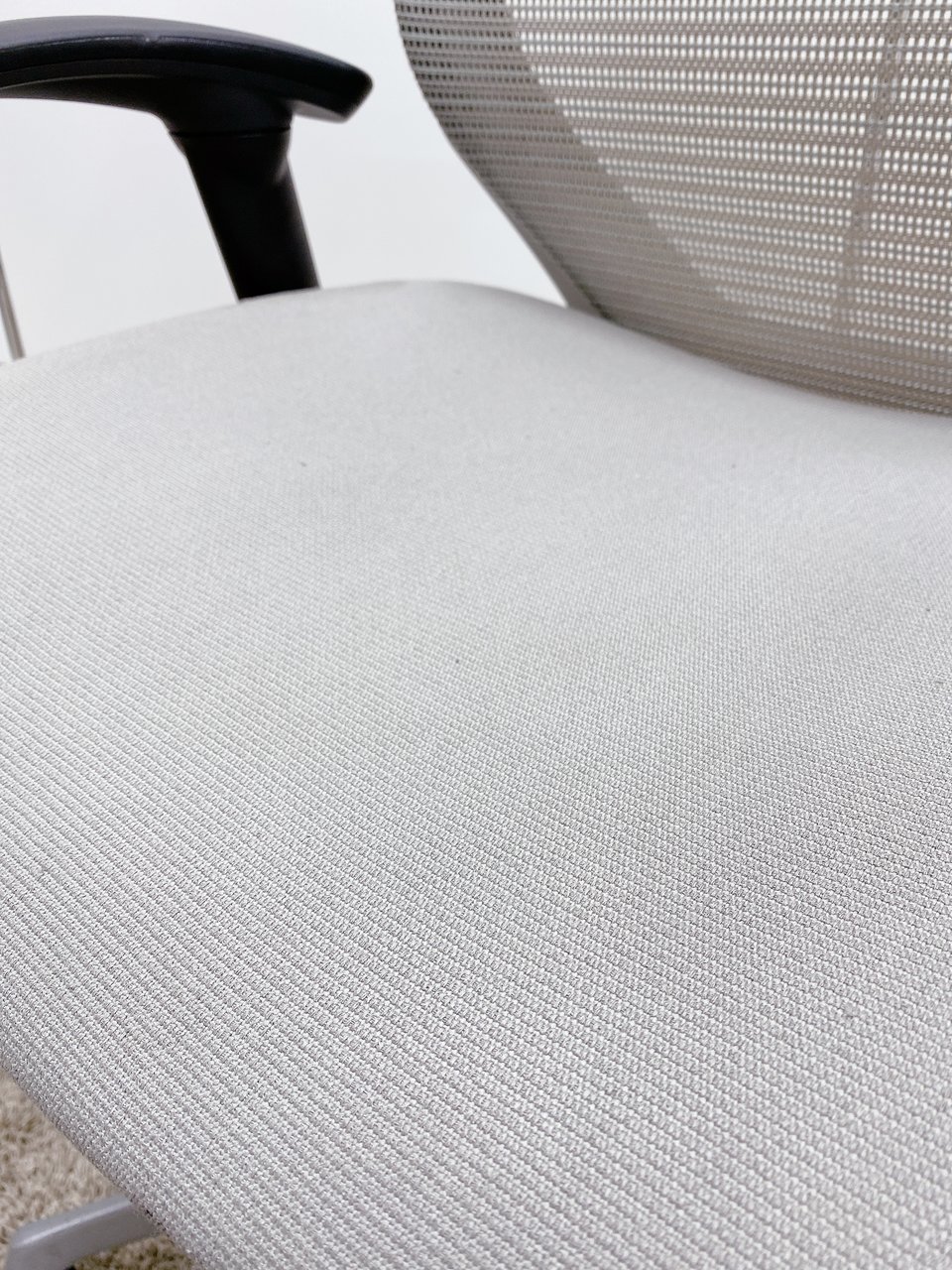 もちろん座り心地もコンテッサの直系ですから快適です。座面の素材はクッションとメッシュの2タイプあります。私、個人的には座面の中心部分でも外側でもテンションが変わらないクッション素材が、足を閉じても開いても快適なので推しです!"