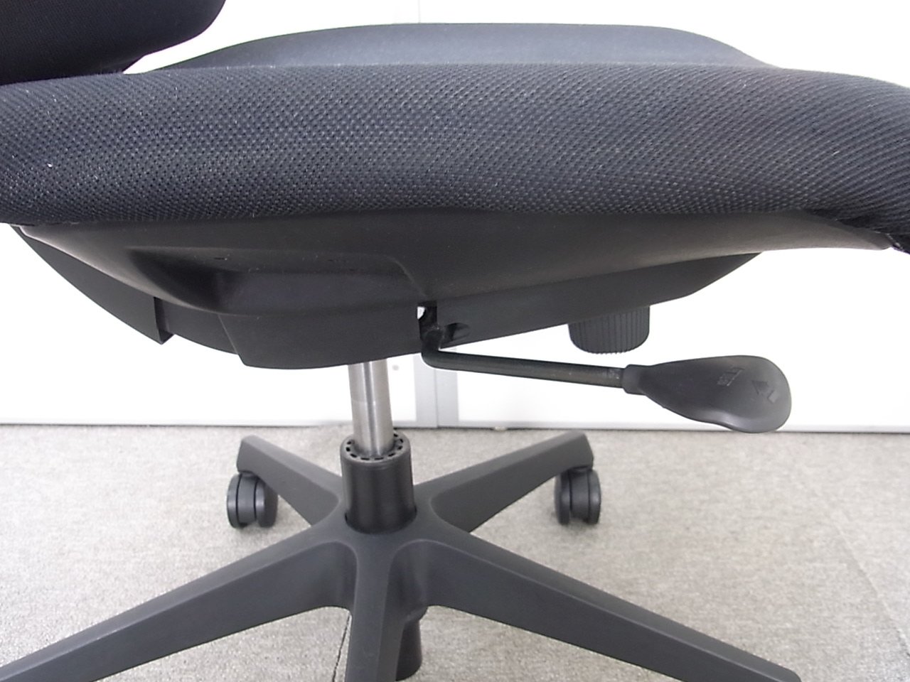 なので、「どれでも同じでしょう」と過小評価されがちですが、さすがのオカムラ製!座面の無段階上下調整やリクライニングの反発の強さ調整などに加え、リクライニンする際に足首の位置を支点にして動く、アンクルチルトリクライニングという特殊な機構が搭載されています。「人間が寄りかかる動き」にぴったりとフィットし、快適さをもたらしてくれます。
